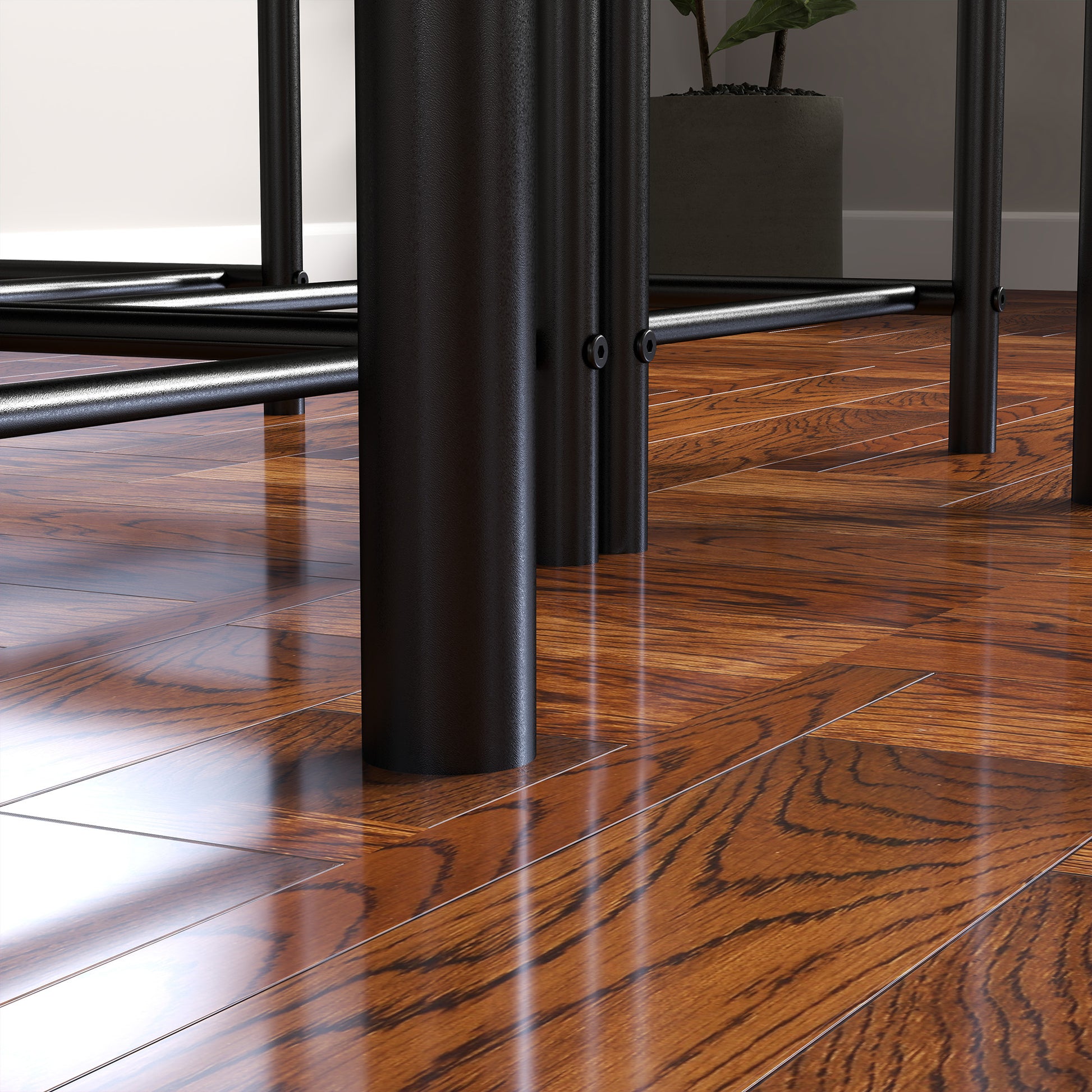 With its rustic, brown wood-effect tabletop and sleek, black metal frame, this dining set blends seamlessly into a variety of interior design styles. It is ideal for kitchens, dining rooms, or living rooms.