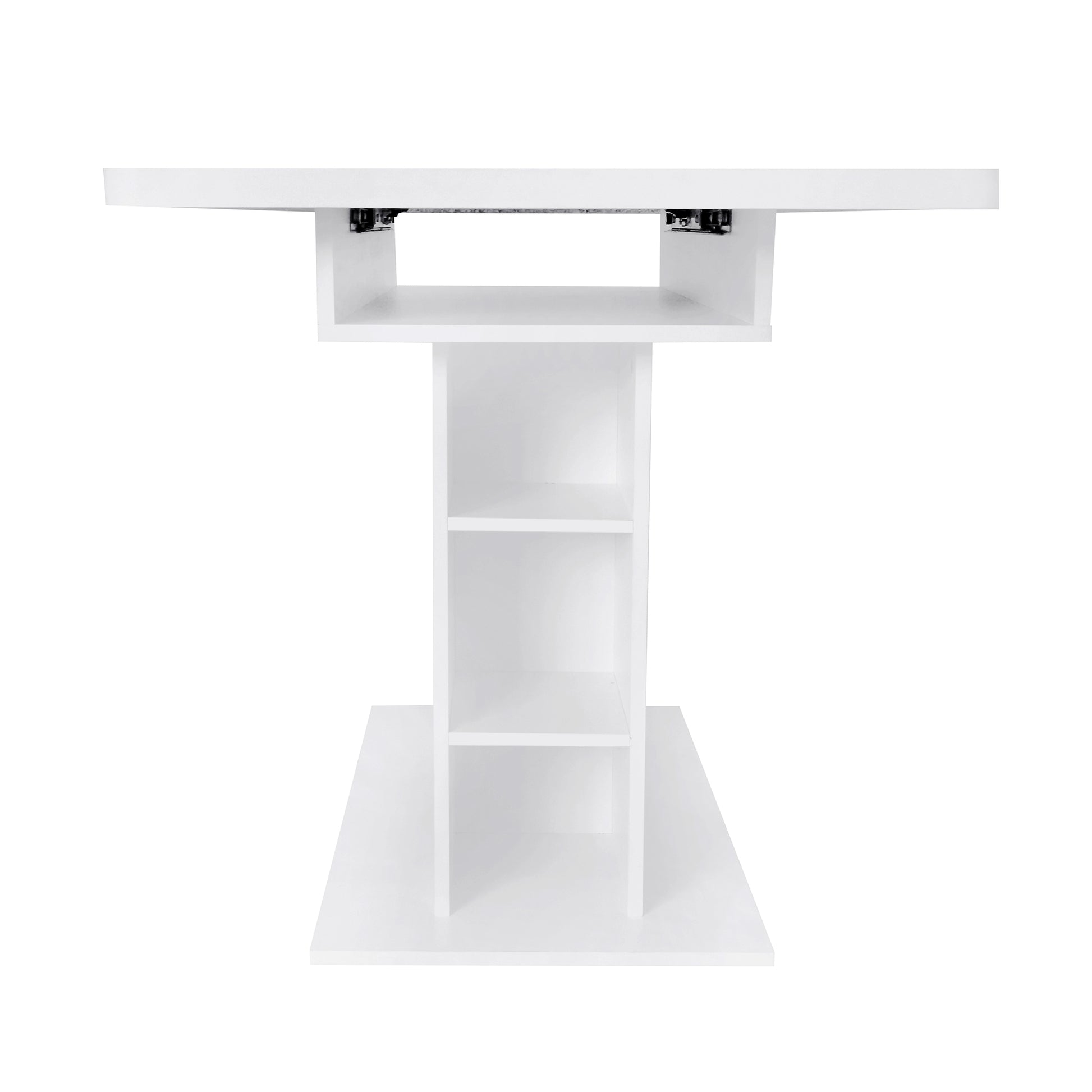 Dining Set with Extendable Rectangular Table and 6 Sherpa Fabric Chairs, Storage, White