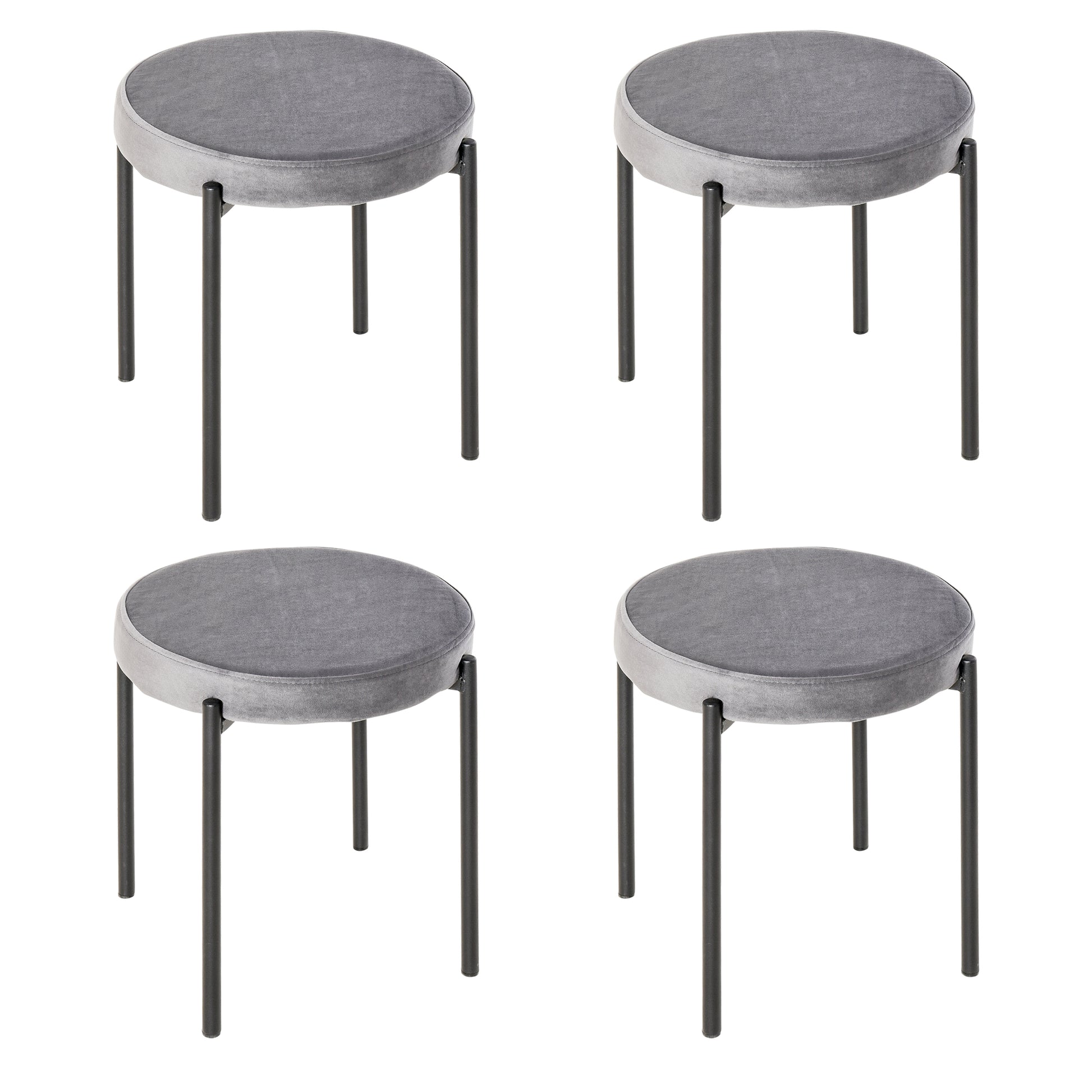Dining Stools/Kitchen Chairs Set of 4 Stackable Upholstered Velvet Look, Grey Metal