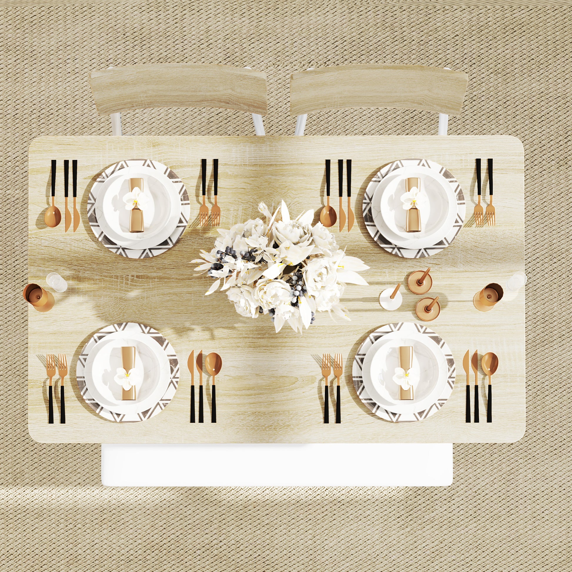 Space-saving: The armless chairs and bench are designed to fit perfectly under the table, making this set ideal for smaller dining areas or kitchens.
