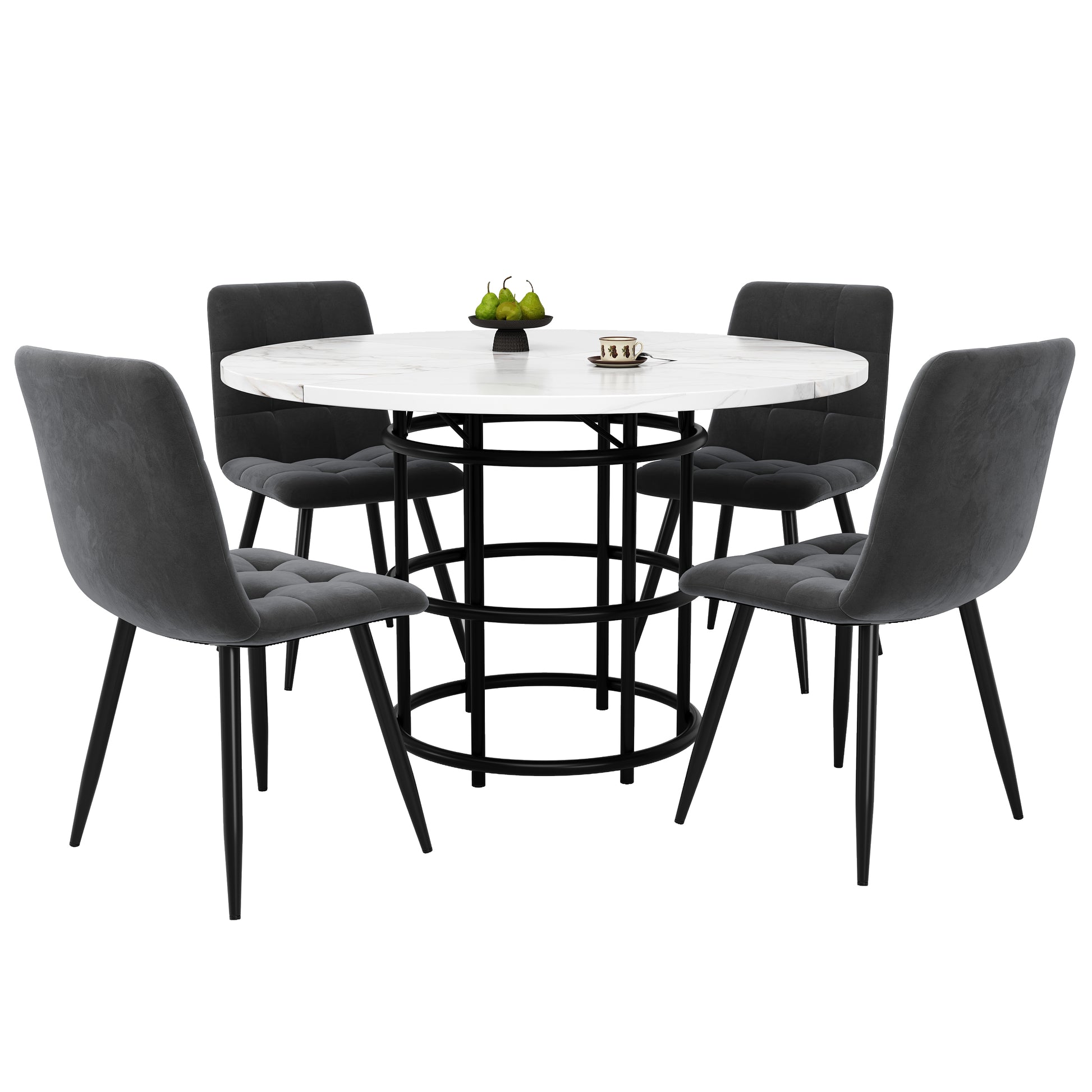Dining Table Set 5-Piece Round 100cm MDF/Velvet White/Grey