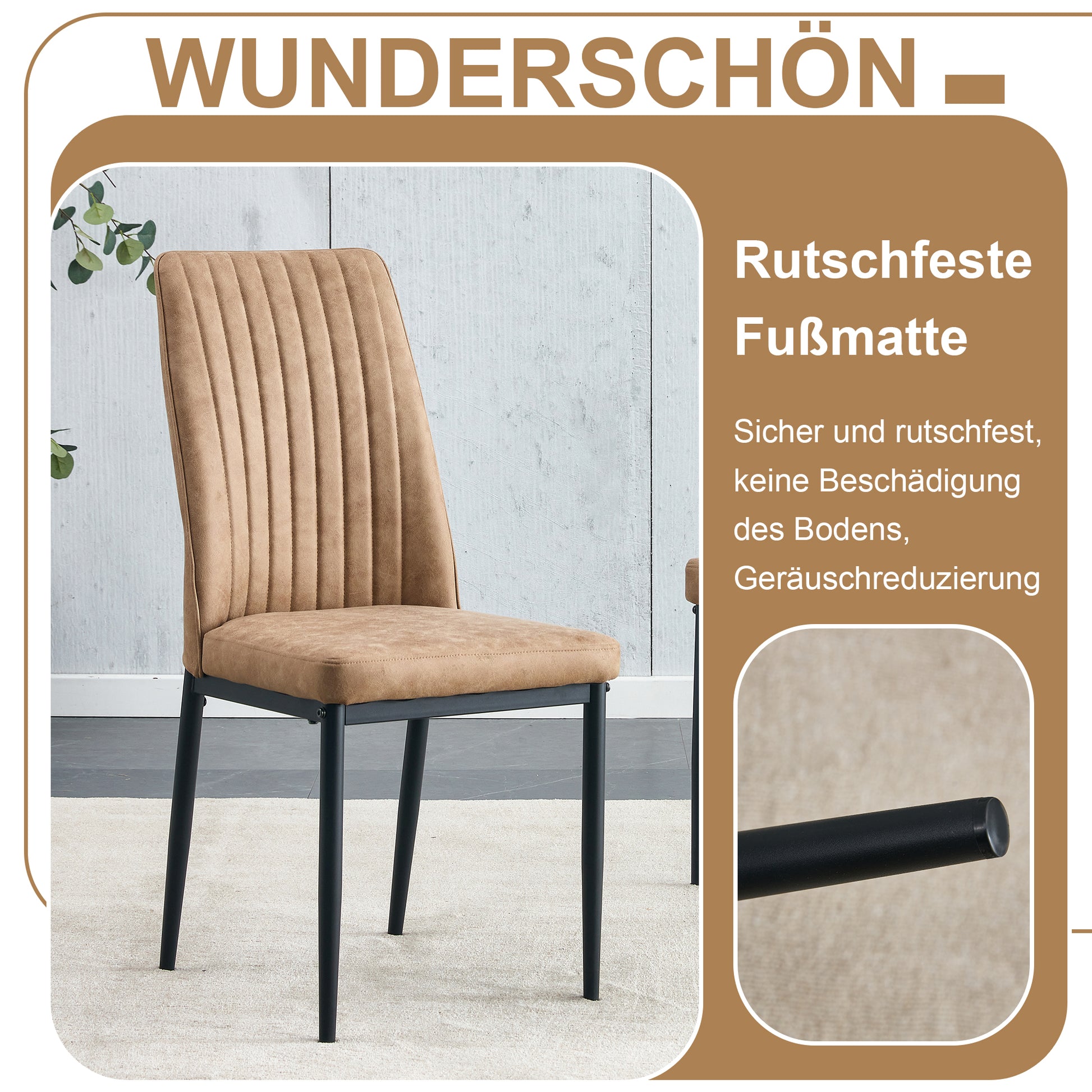Seats and backrests are upholstered in brown tech fabric with a vertical pattern, combined with simple black metal legs, instantly lending a warm atmosphere to living areas such as dining rooms and kitchens. The black metal legs provide robust support and durability. Each chair is designed to support 120 kg (265 lbs) for everyday use.