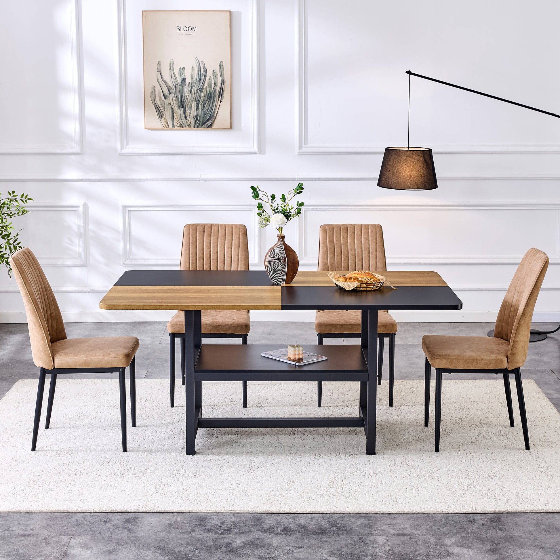 The brown tech fabric seat and backrest with a vertical pattern, combined with simple black metal legs, instantly create a warm atmosphere in living areas like dining rooms and kitchens. The black metal legs provide robust support and durability. Each chair is designed to support up to 120 kg (265 lbs) for everyday use.