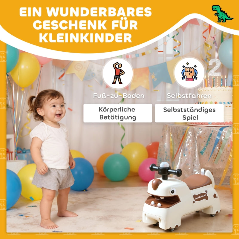 Dinosaur Push Car with Steering Wheel, Lights and Sounds, Cream White and Brown