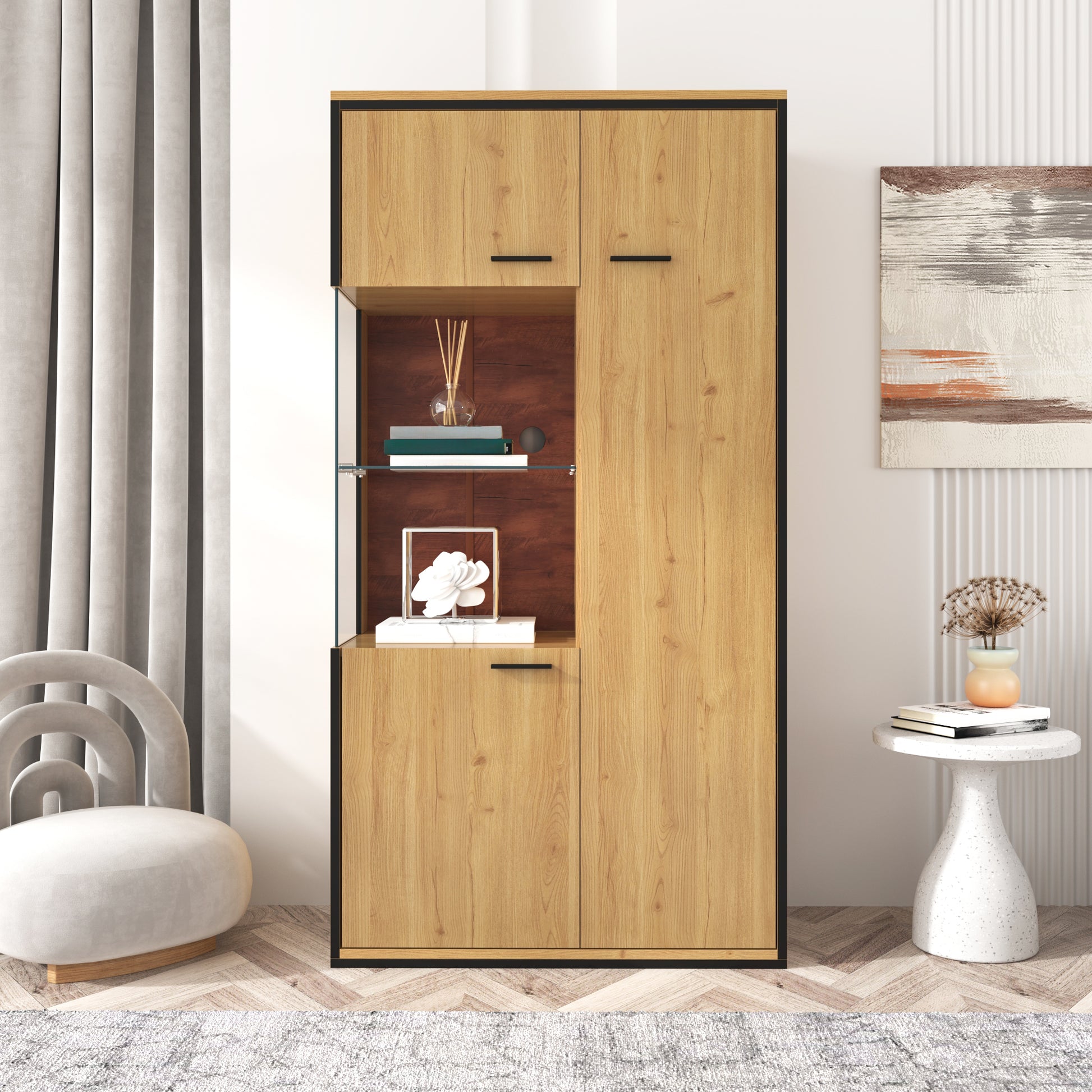 Display Cabinet, 150Hcm LED Glass Multi-Purpose, 15 Color Options