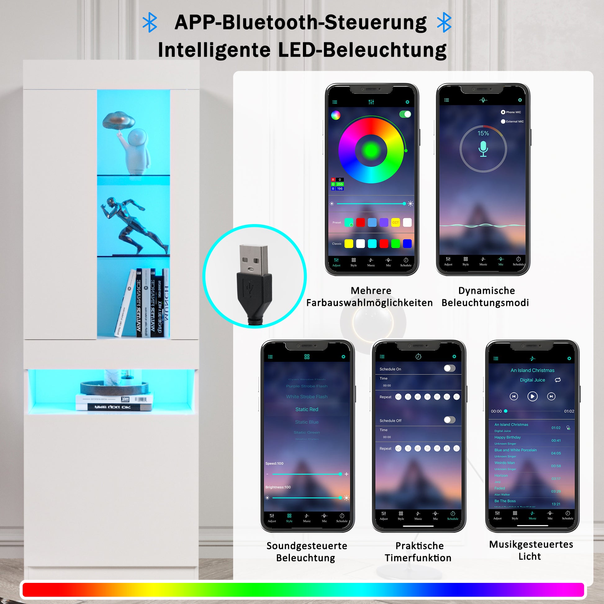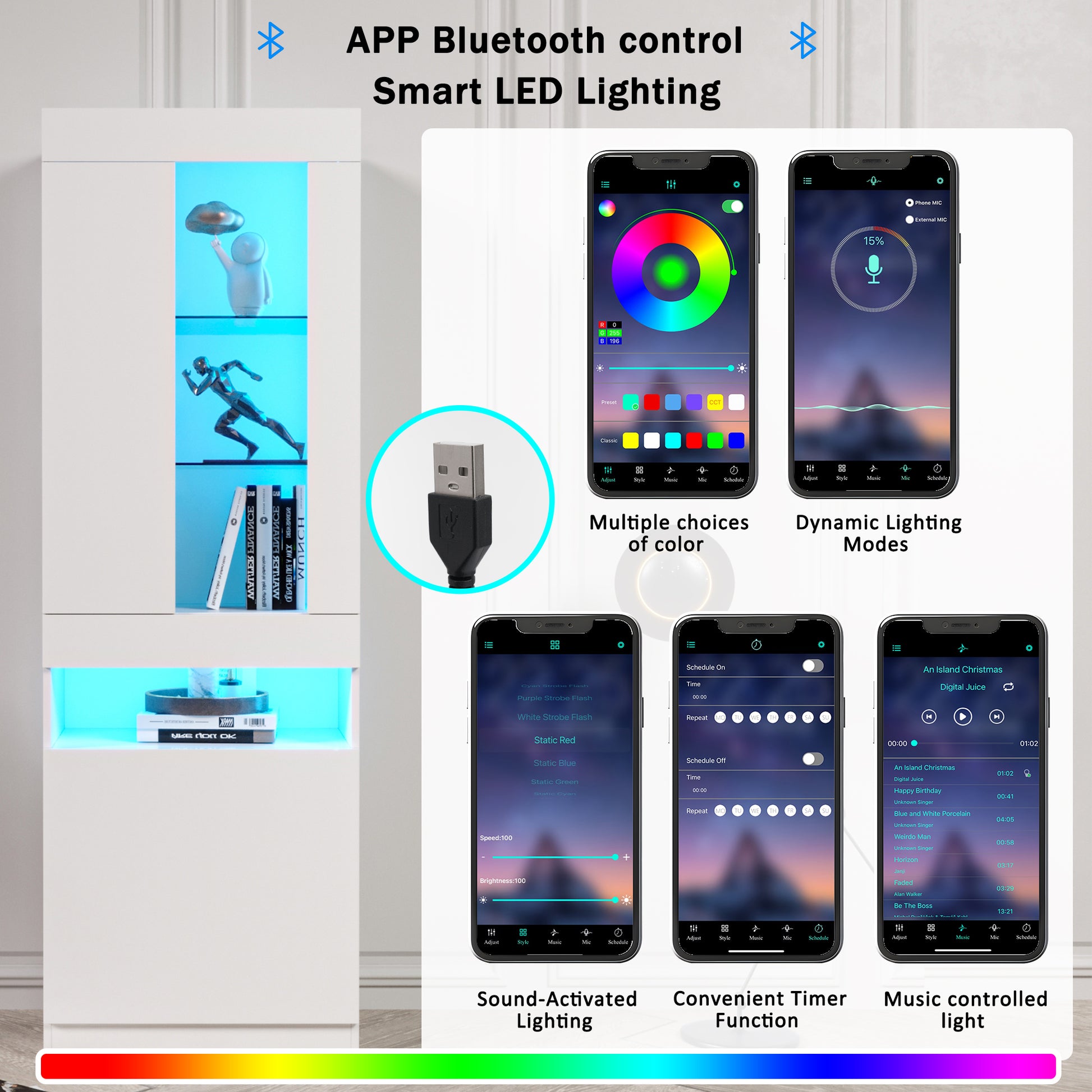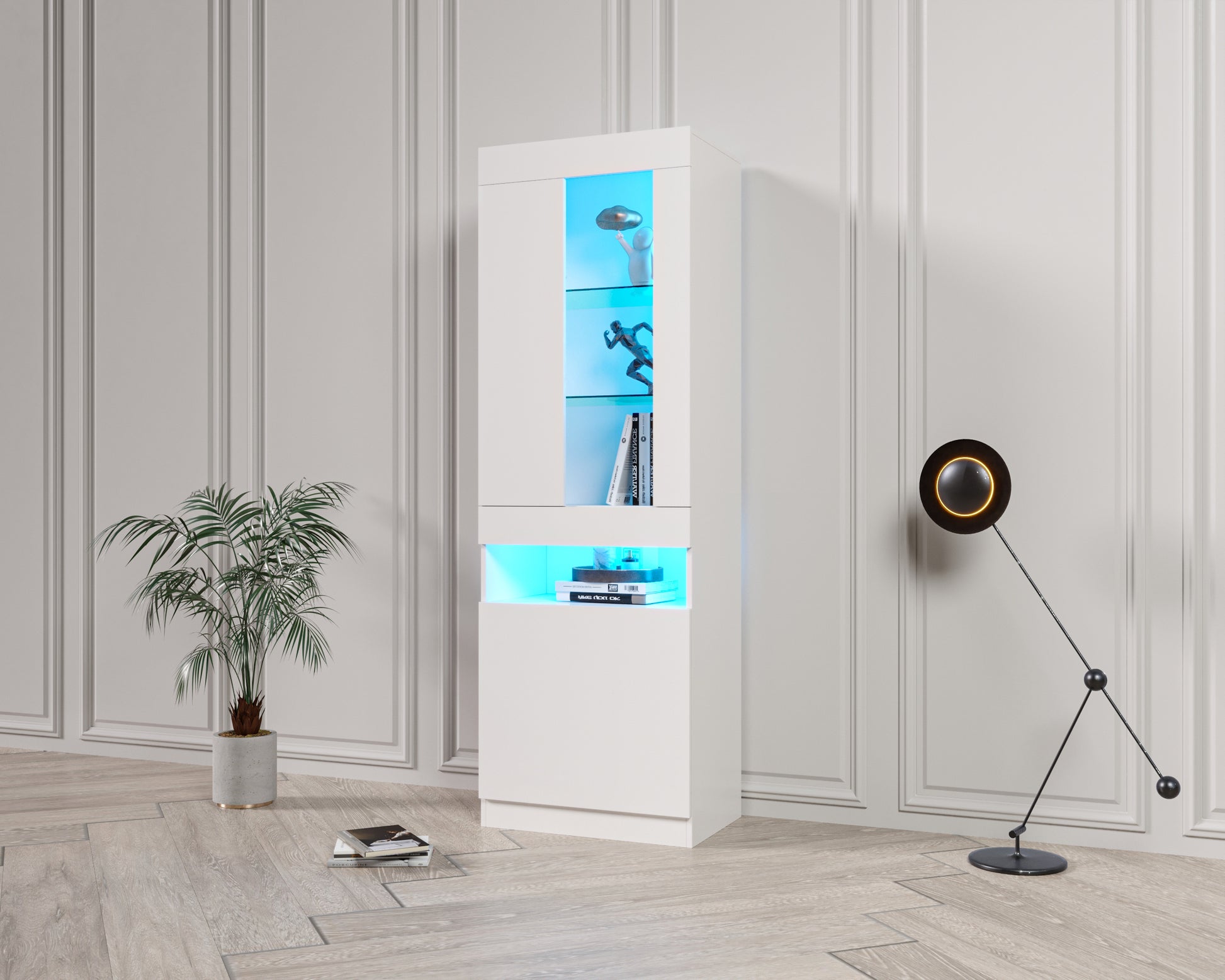 Display Cabinet, 16-Color LED, Freestanding Storage, White