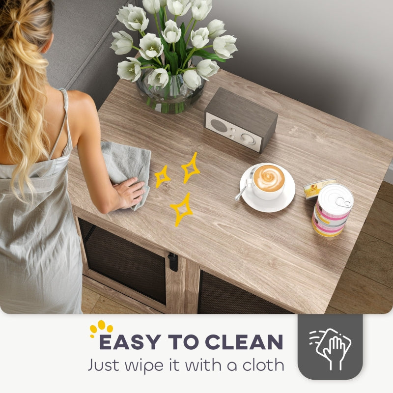 Pet-friendly material: Built with stable particleboard and reinforced with a chew-resistant mesh grid, this dog crate ensures a stable and safe space for your pet to relax.
