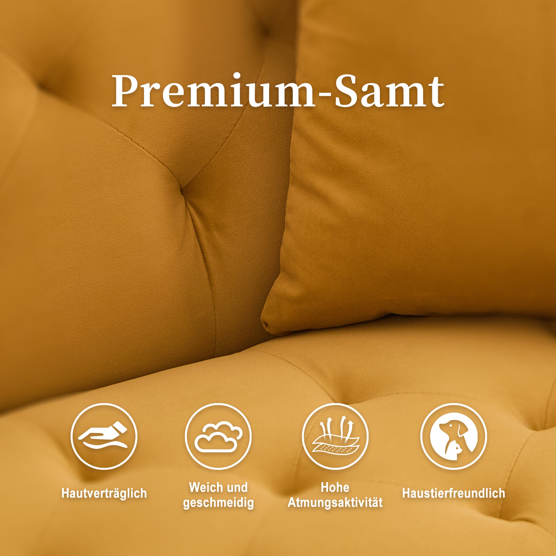 Double Sofa, Modern Velvet with Adjustable Backrest, Mustard Yellow
