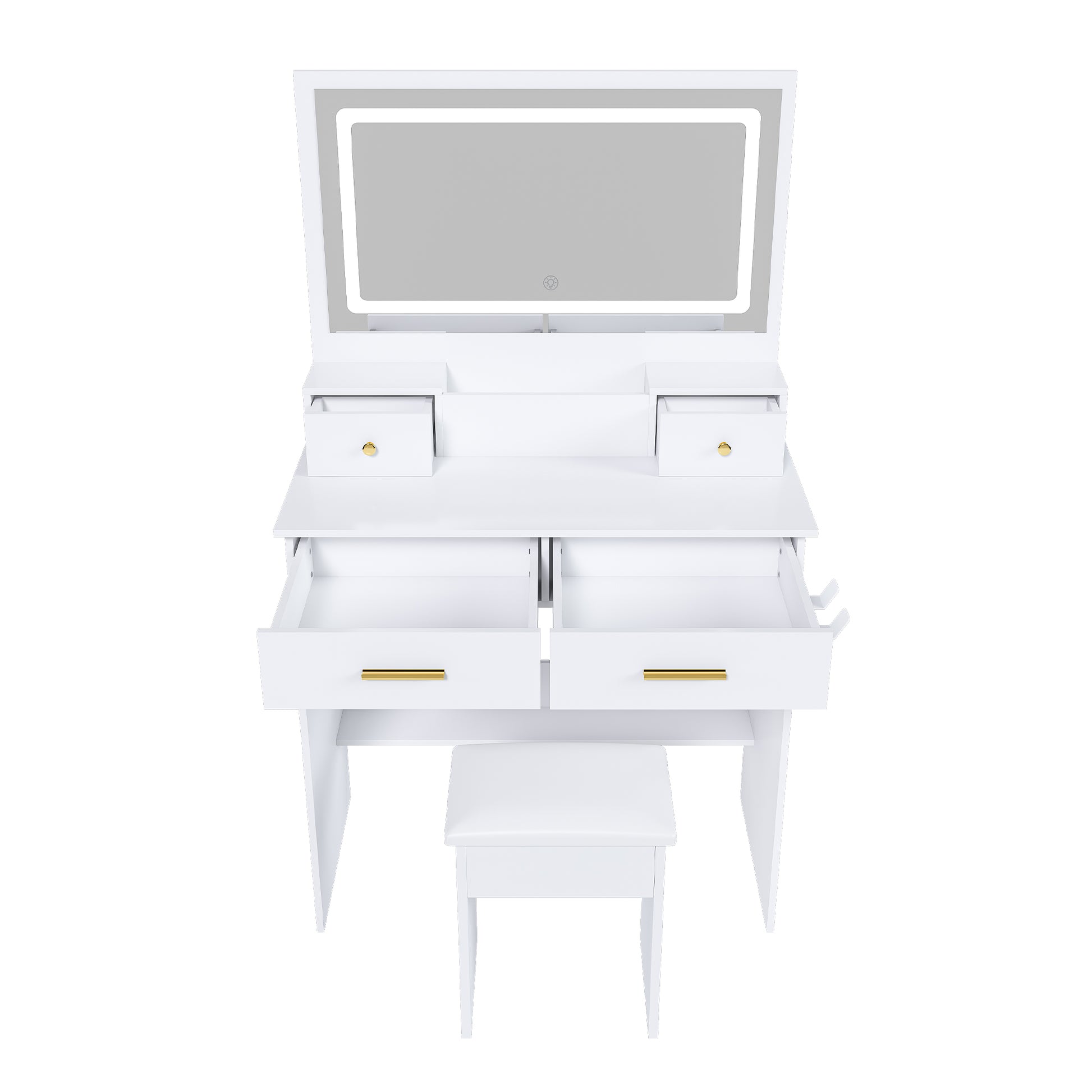 Dressing Table with XXL Mirror, Stool, 4 Drawers, LED Light - White