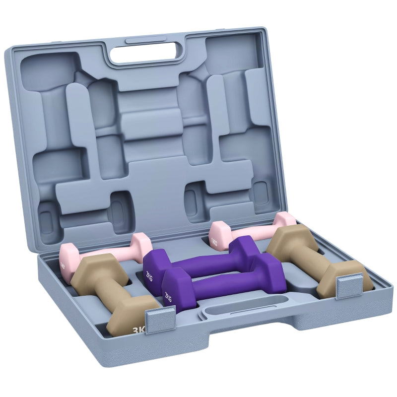 Complete Weight Set: This set includes six color-coded dumbbells (2 x 1 kg, 2 x 2 kg, 2 x 3 kg), perfect for effective training at home.