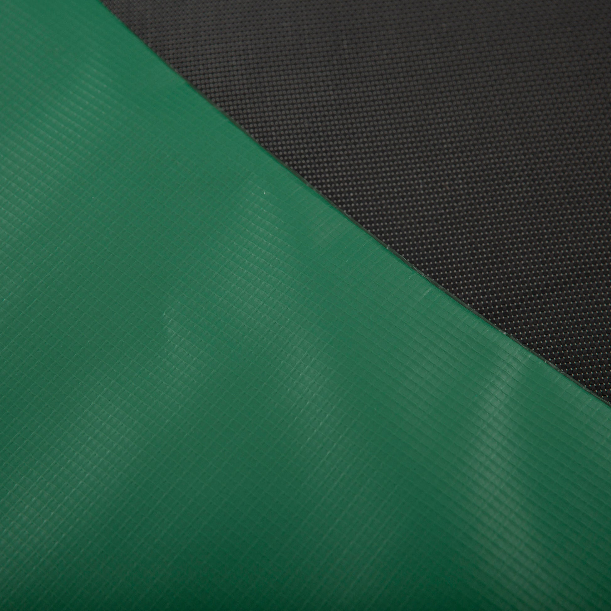 This trampoline replacement mat is made of high-quality and safe 500D plastic on the top and 128g/m² PE on the bottom. The deep side skirts overlap the entire trampoline frame.