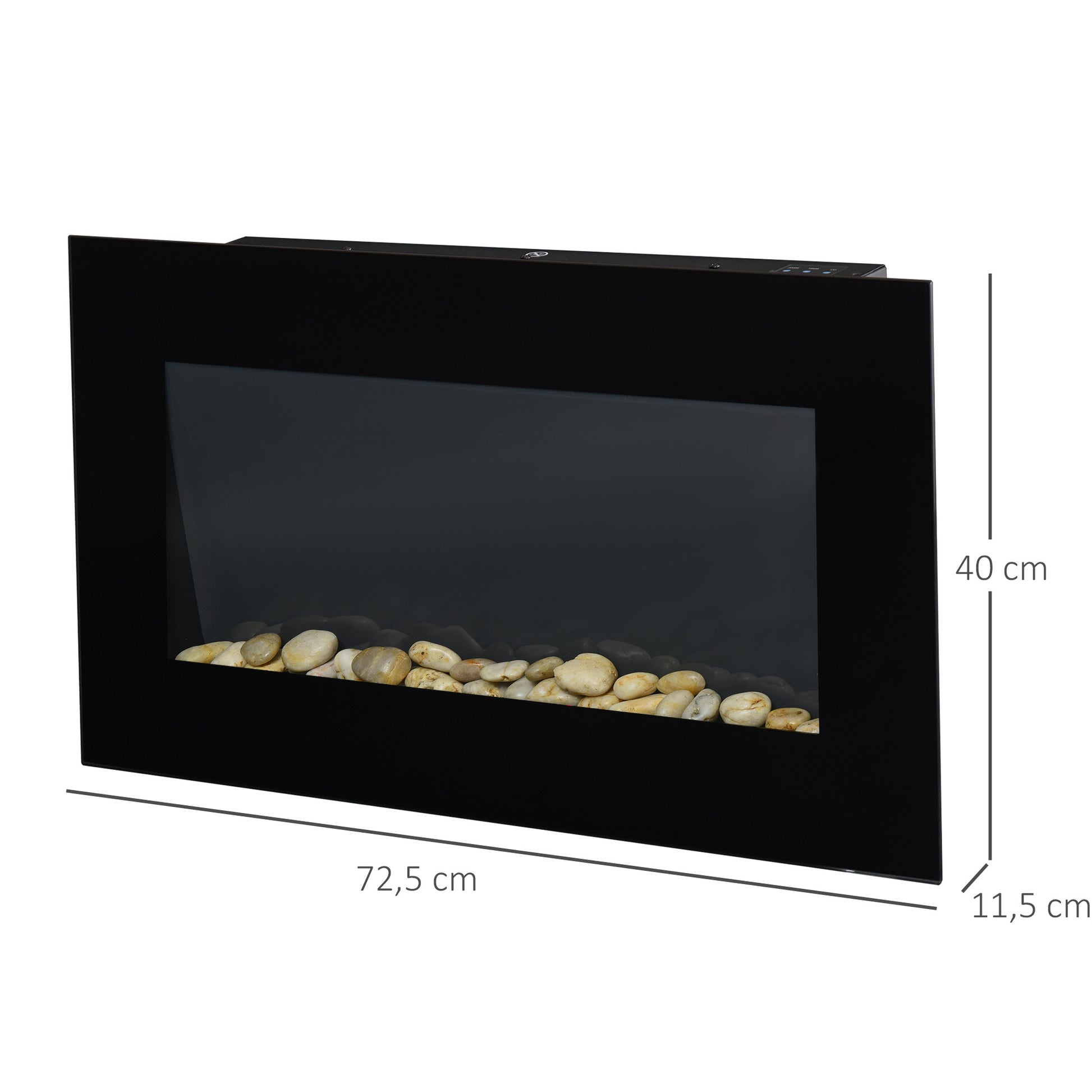 Electric Fireplace, LED Flame Effect 1000/2000W 7 Colors Remote Control Wall-Mounted, Black