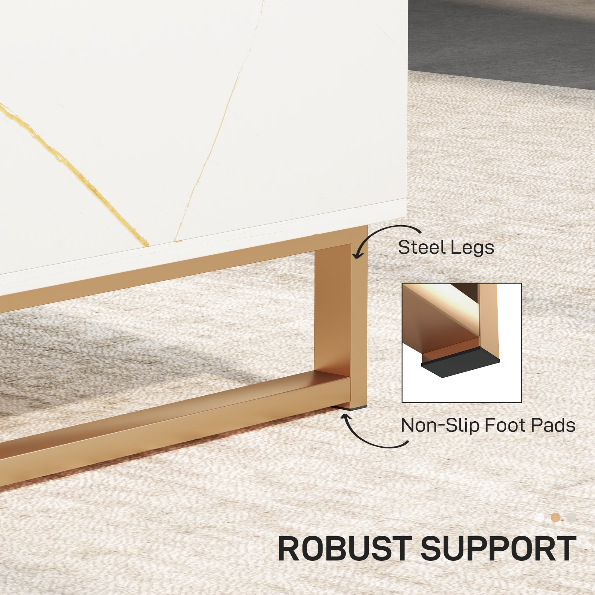 Elegant Design: This small coffee table features a beautiful marble effect pattern across the surface, accented with gold-tone detailing and a fluted drawer panel, bringing a sophisticated touch to your living room.