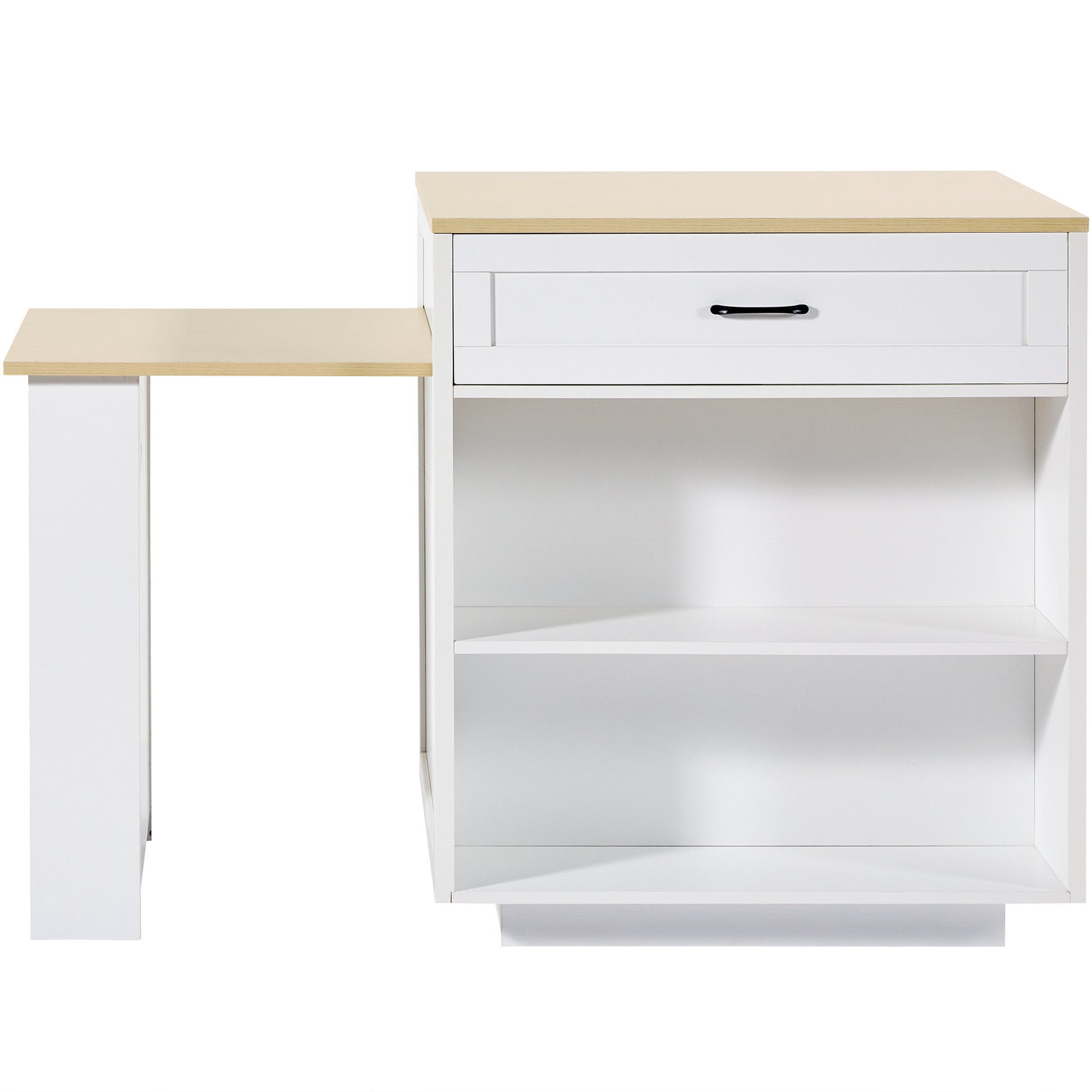 Extendable Bar Table Kitchen Island Dining Cart with Storage Drawers and Shelves White