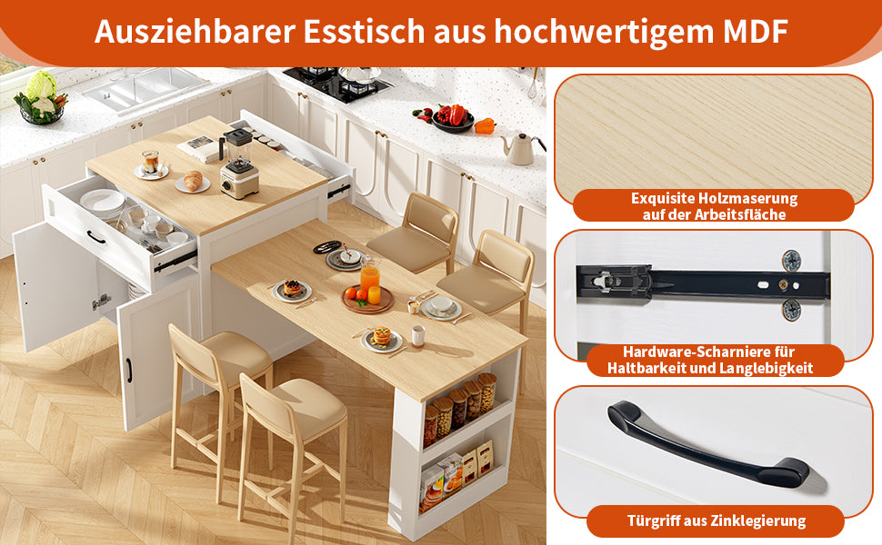 Extendable Bar Table Storage 2 Drawers Side Shelves - White