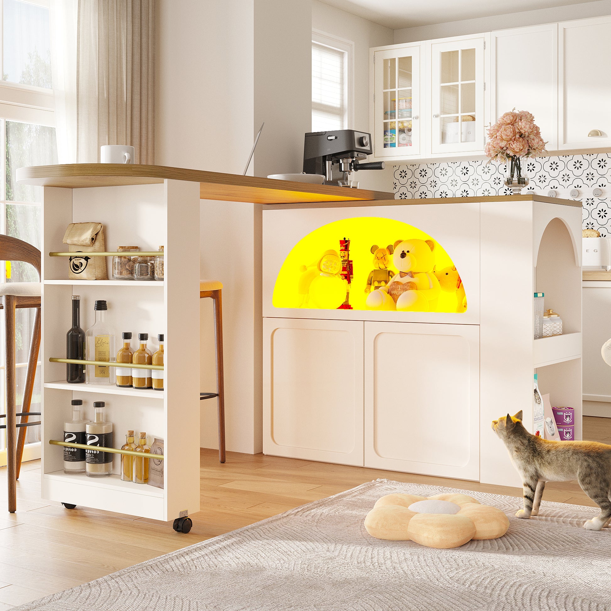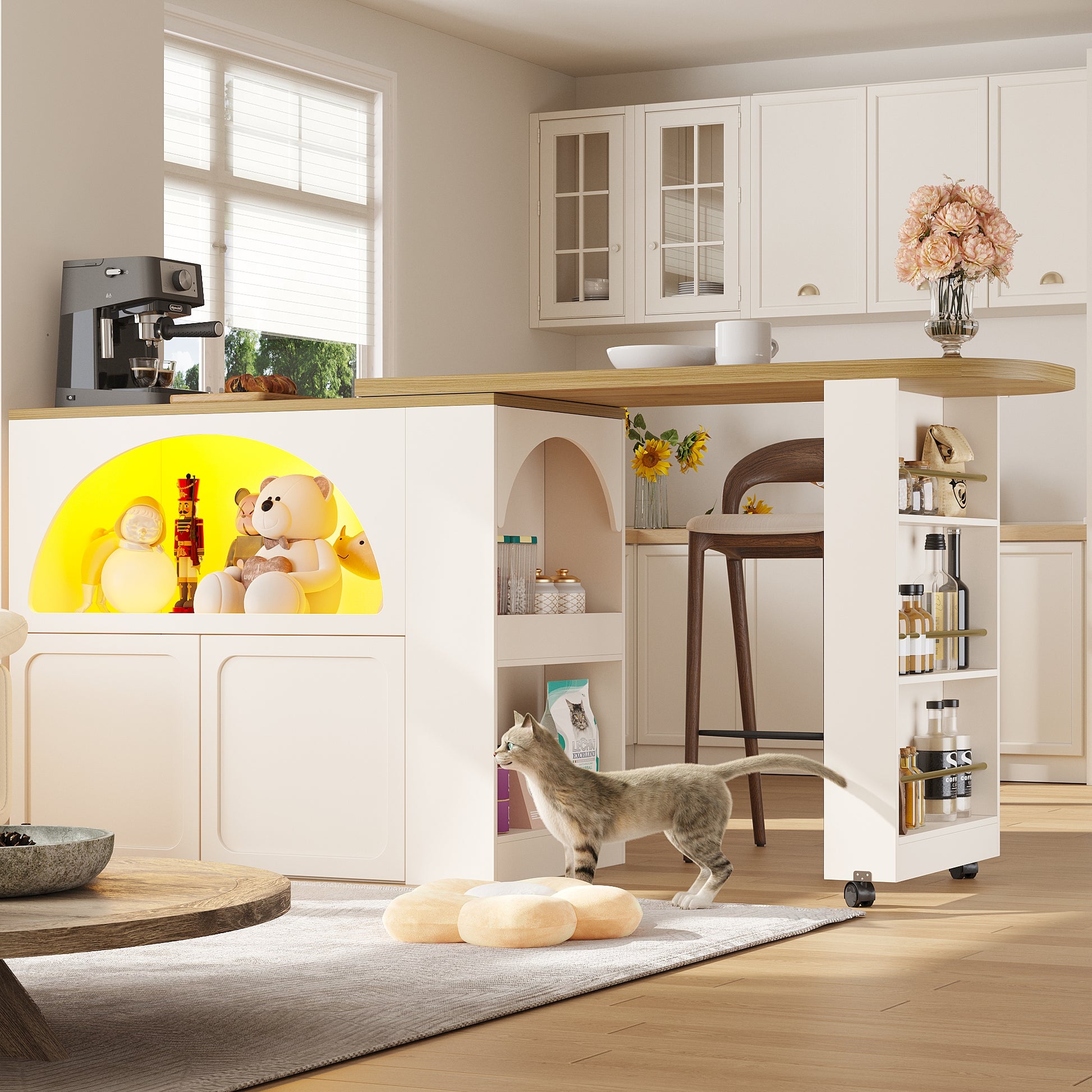 Extendable Bar Table Storage LED Curved Door Design - White