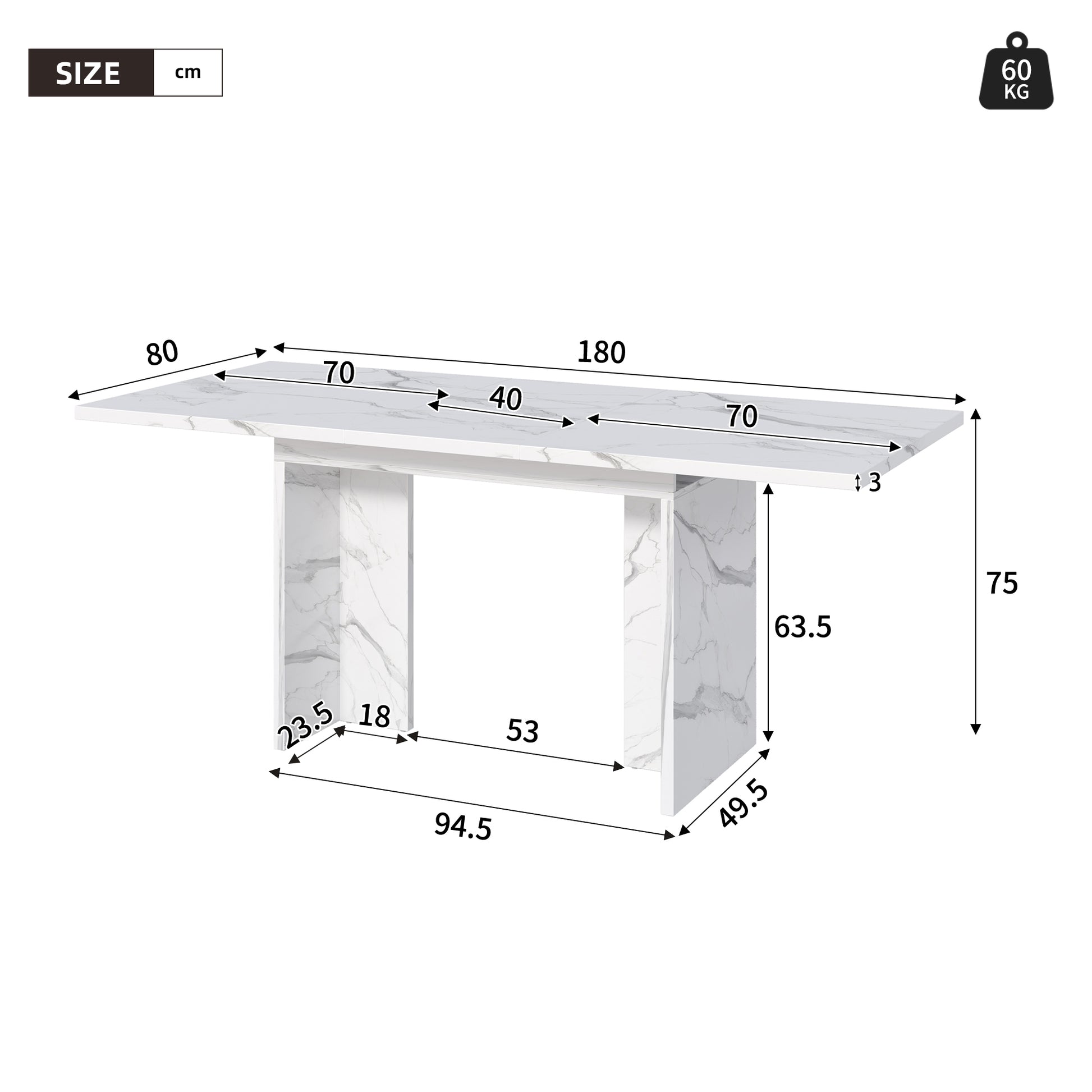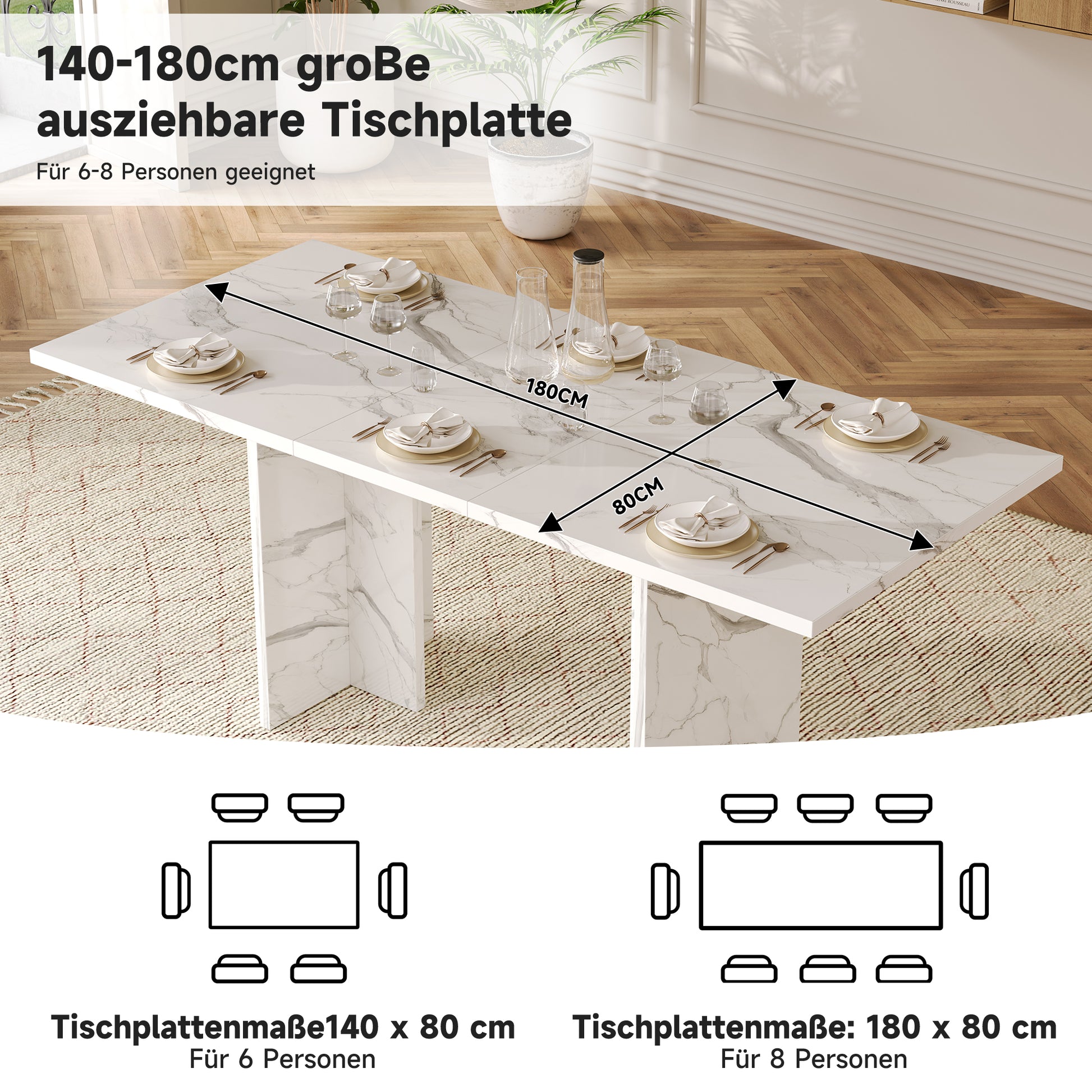 Extendable Dining Table 140/180x80cm Rectangular 6-8 Seater - White Marble