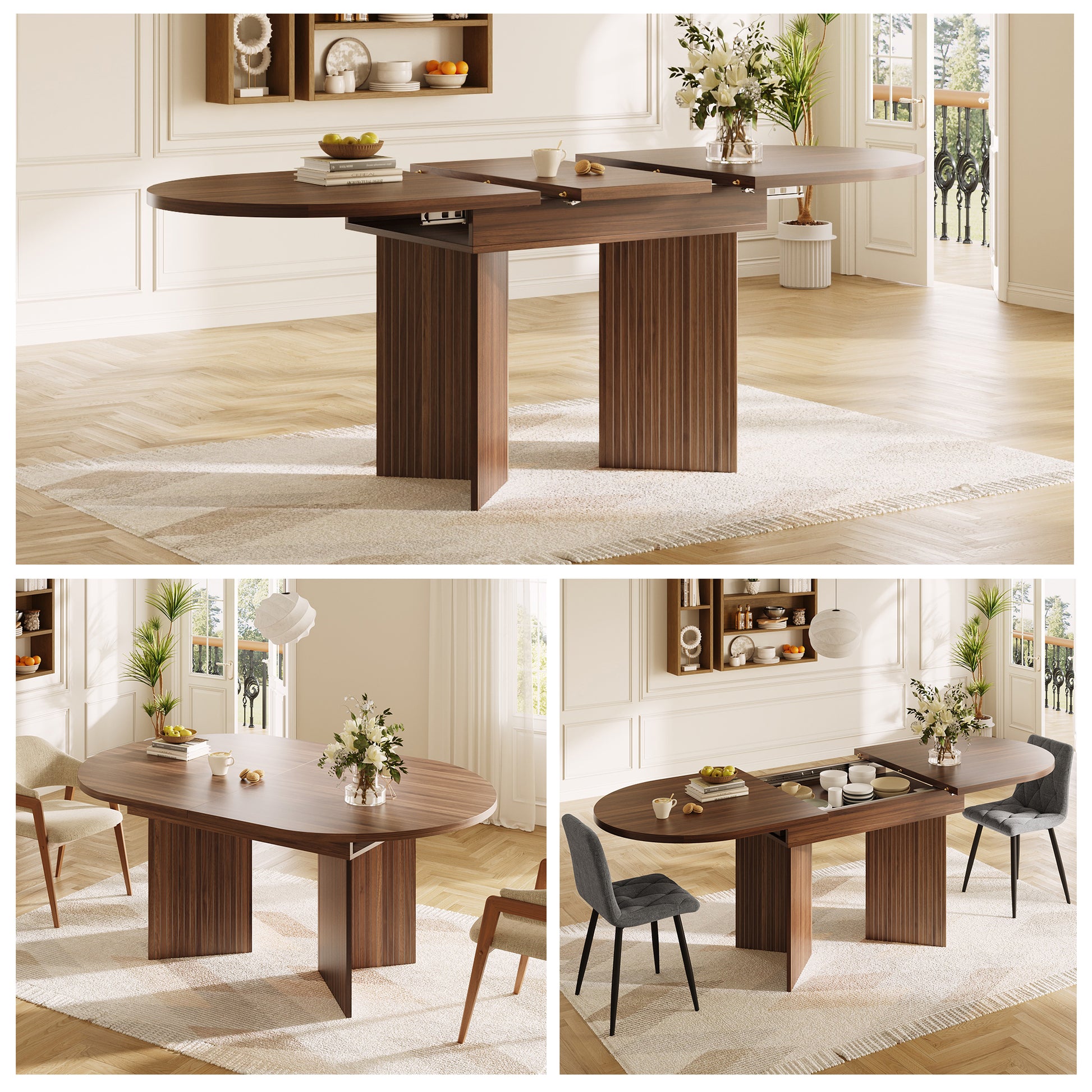 Thanks to the clever combination of easy maintenance, robust construction, and a flexible extension mechanism, this table is an extremely practical companion for everyday life. It offers maximum usable space when needed, while remaining compact otherwise. Whether as a dining table, desk, or additional storage, its versatile applications and thoughtful design make it a smart choice for modern living.