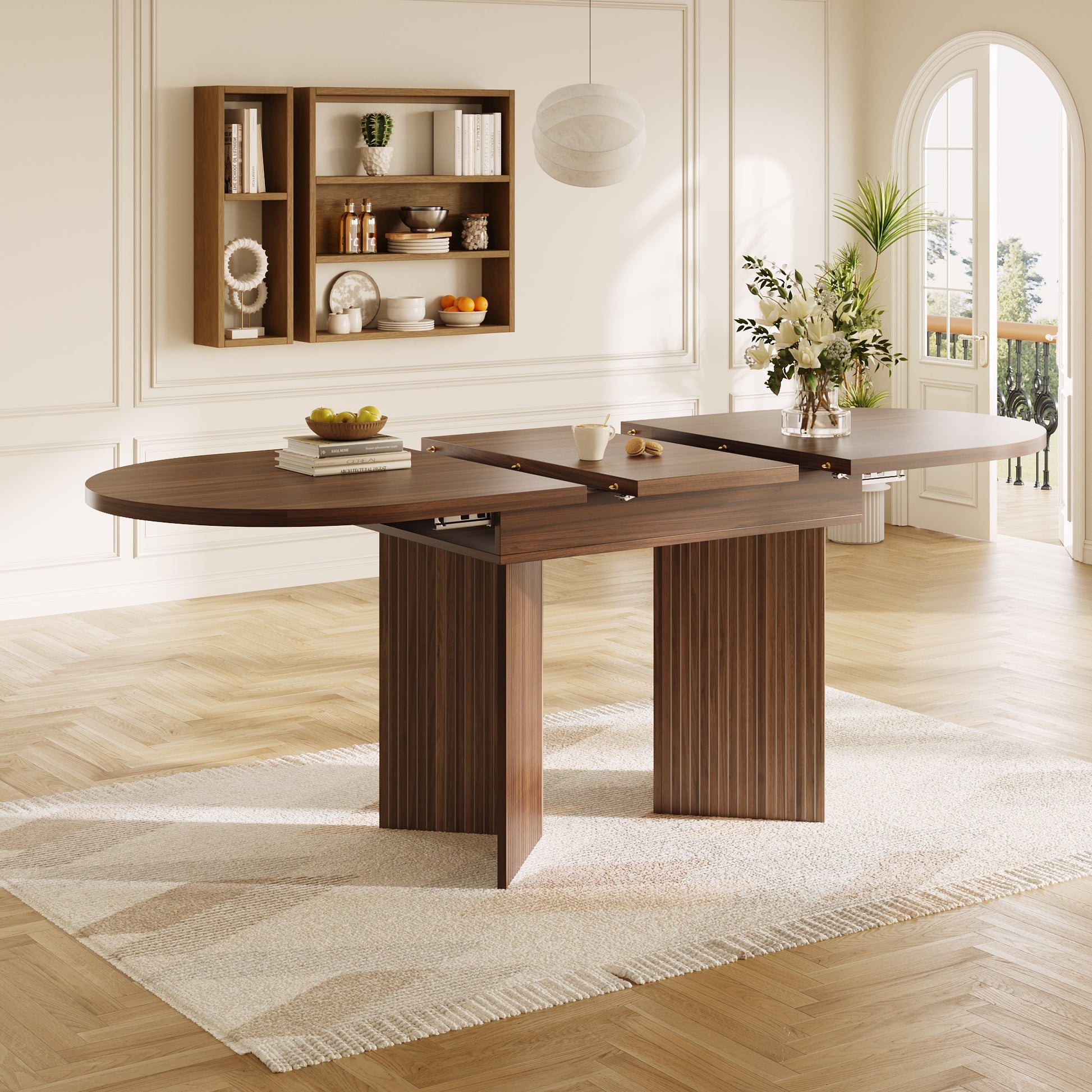 Extendable Dining Table with Internal Extension Leaves, 120-160 cm, Walnut Wood Finish