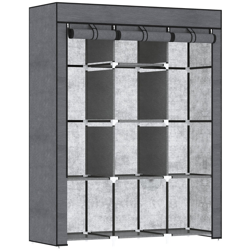 Fabric Wardrobe with Rails and Shelves - Dark Grey