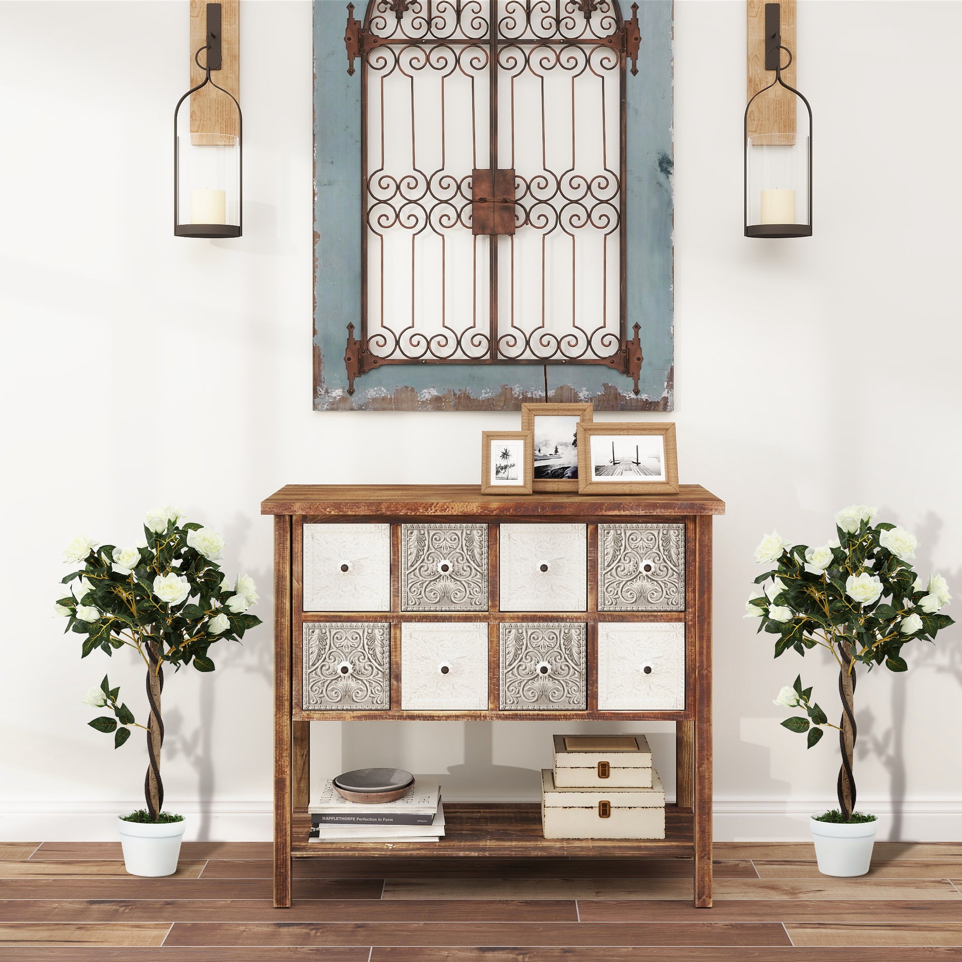 Faux Rose Trees, Set of Two - White