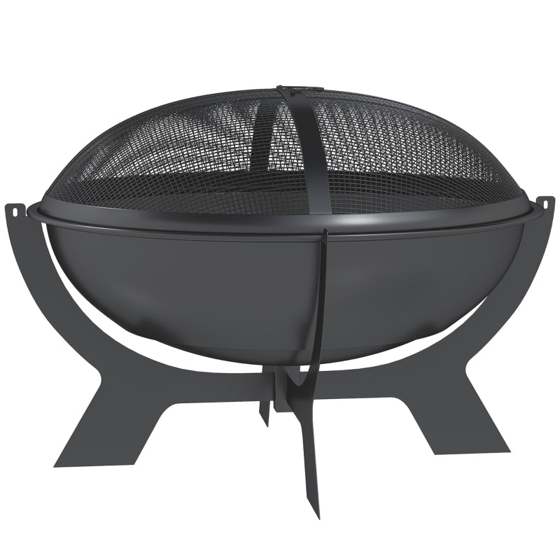 Safety first: Equipped with a secure mesh lid and a sturdy support base, this fire bowl includes a poker to safely control the fire.
