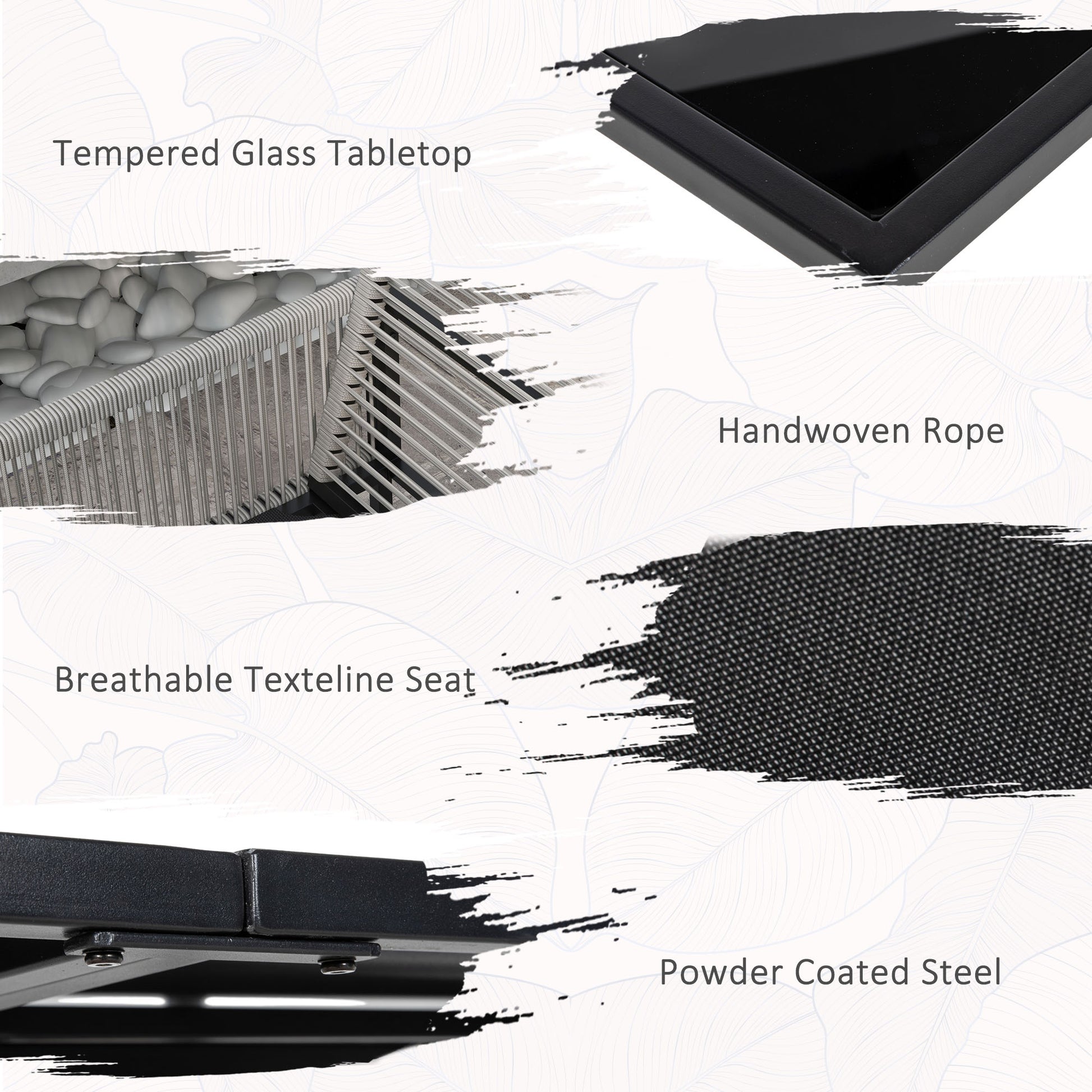 The glass-top dining table is tempered for strength, providing a safe and sleek surface for dining.