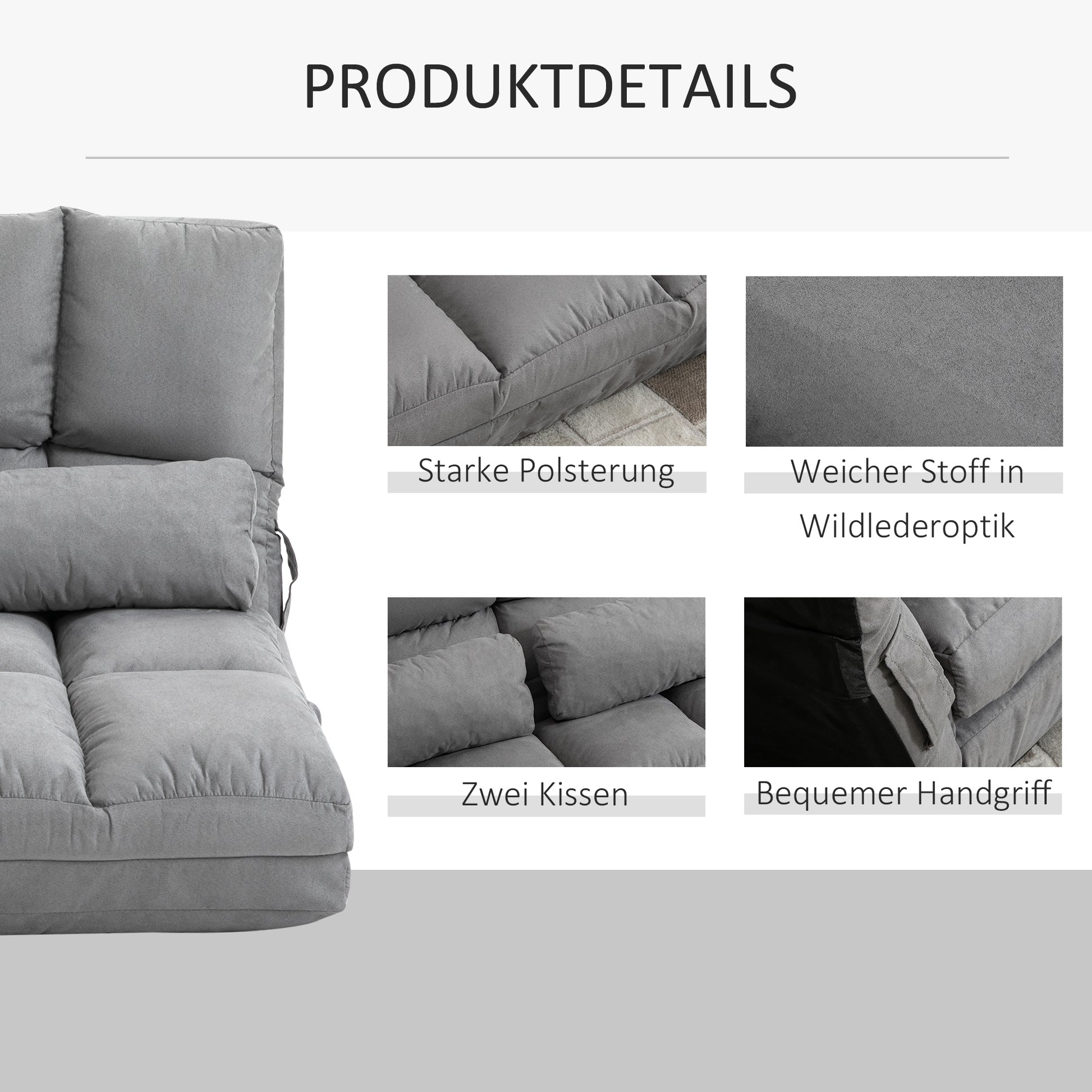 Floor Chair & Bed, Adjustable Backrest Seat Cushion, Grey Velvet & Steel