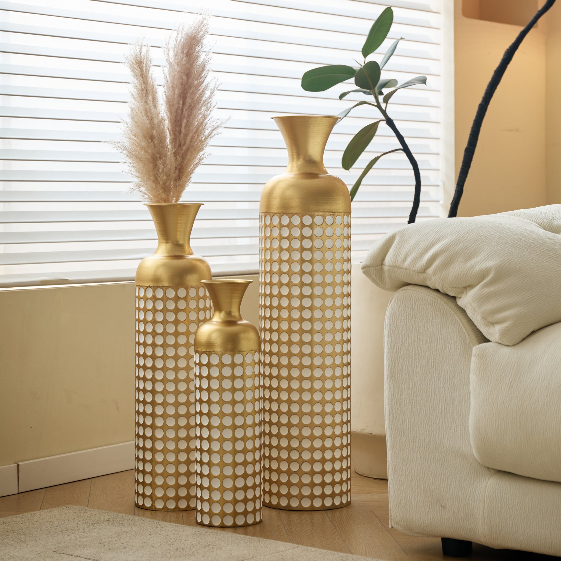 Floor Vase Set, 3 High Retro Vases 83/65/50cm, Decorative Metal Antique Gold