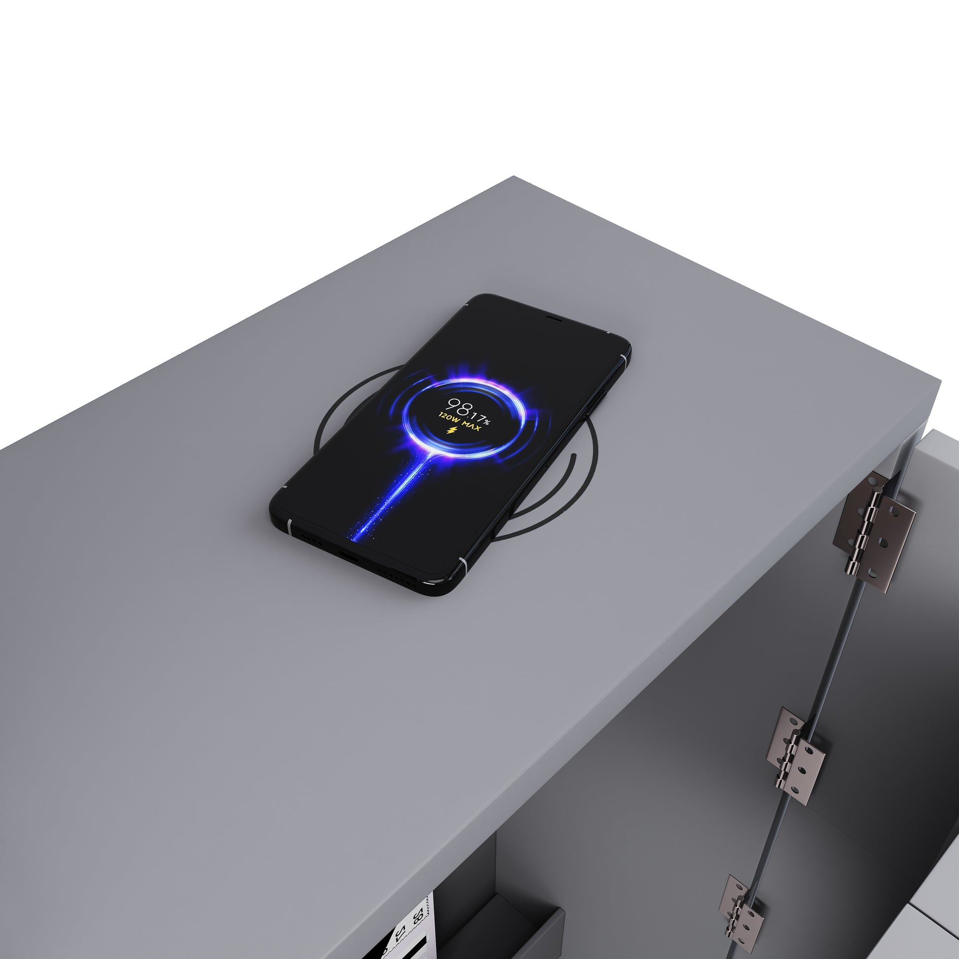 A particularly practical feature is the integrated wireless charging on the tabletop. Simply place your smartphone on it and charge it without any tangled cables.