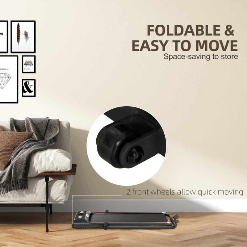 Foldable Walking Treadmill with LED Display and Wheels, Red