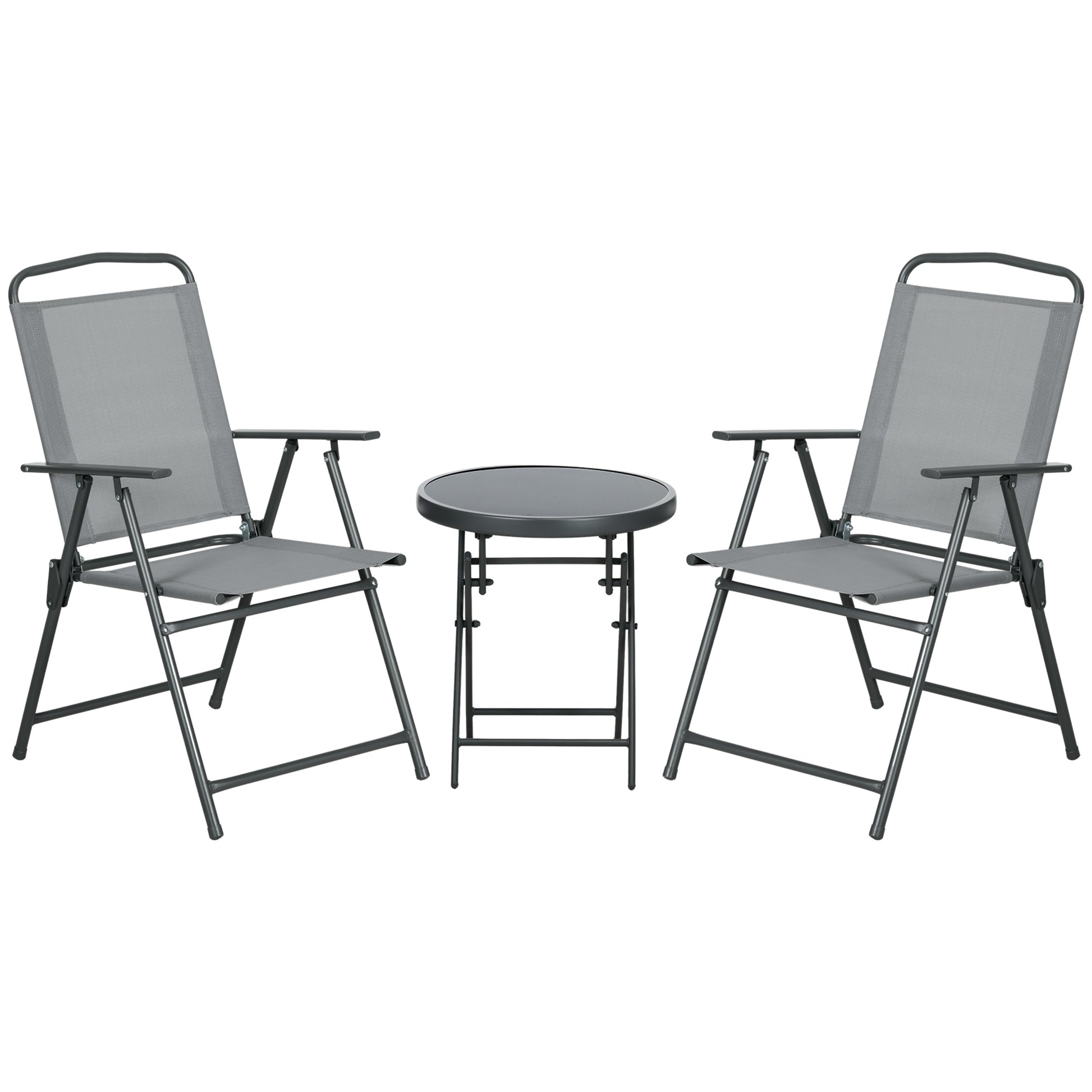 Folding Bistro Set, 3-Piece Table & 2 Chairs, Durable Steel & Mesh, Light Grey