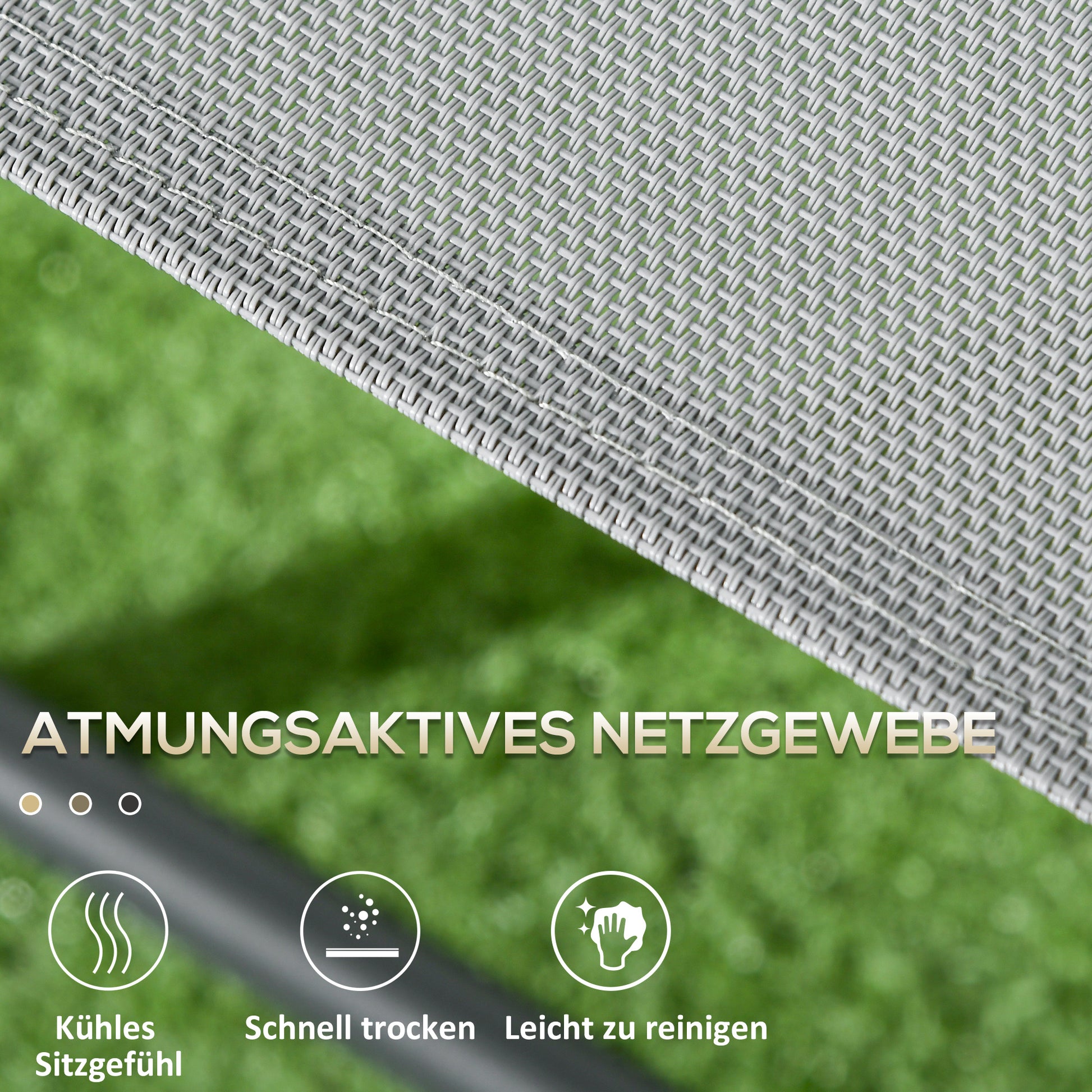 Metal Frame: The outdoor table and chairs feature a powder-coated frame and breathable mesh fabric for quick drying. The set is designed for superior strength and durability.