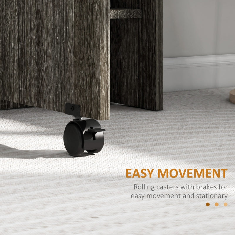 Folding Dining Table, Drop Leaf 2-Tier Shelves Rolling Casters, Grey