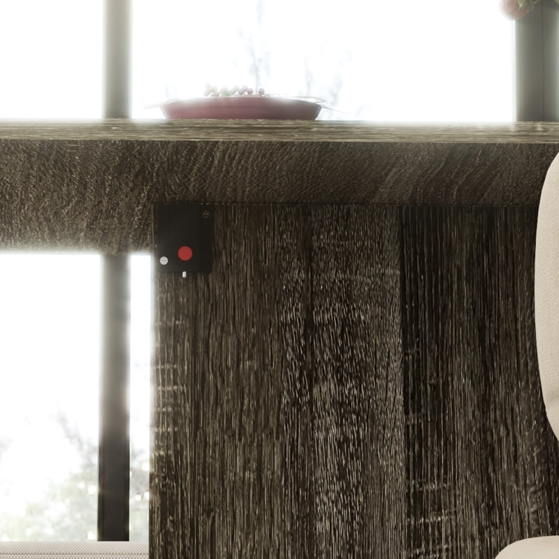 Two center shelves offer handy and discreet storage, allowing you to keep items close by with this small folding table. These shelves are protected by the side tabletops when they are down.