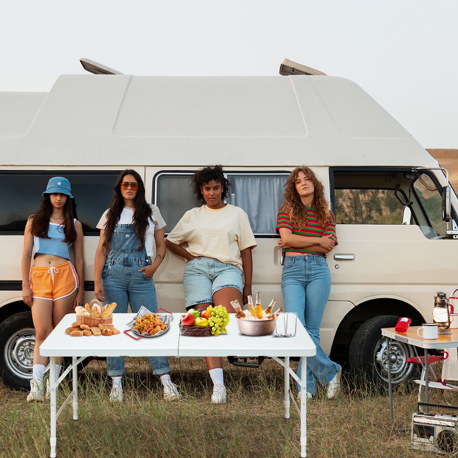 Multipurpose Table: It is perfectly suited for home and outdoor use on various occasions. It can be used as an outdoor picnic or birthday party table, wedding table, portable barbecue table, game table, picnic table, or as a serving or display table. It can also be used as a table for indoor activities, such as a dining table, coffee table, side table, laptop table, or snack table. It offers convenient space for laptops, books, etc.