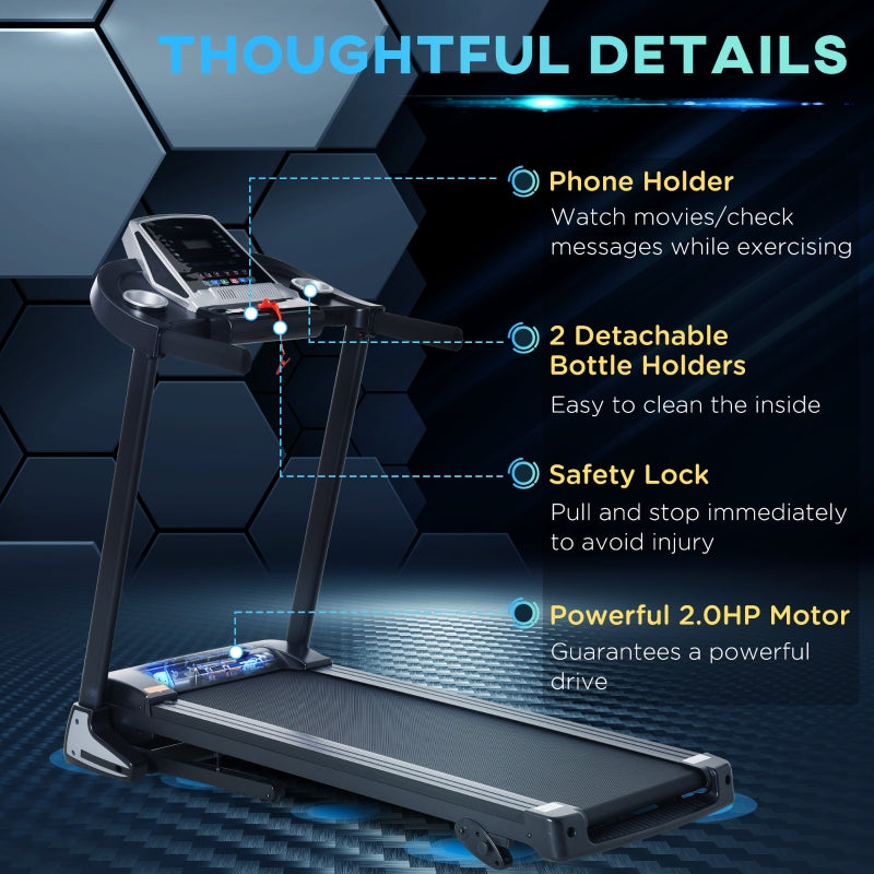 LED screen: Keeping you informed of the time elapsed, your distance, speed and calories burnt, the electric treadmill allows you to focus when working out.