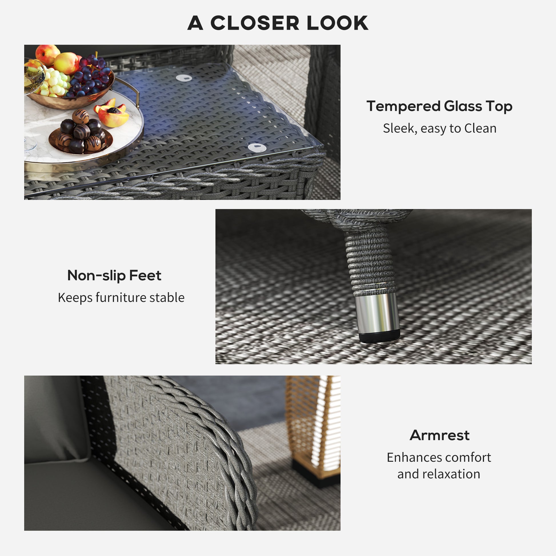 Four-Piece Sofa Set, Rattan with Glass-Top Table, Light Grey