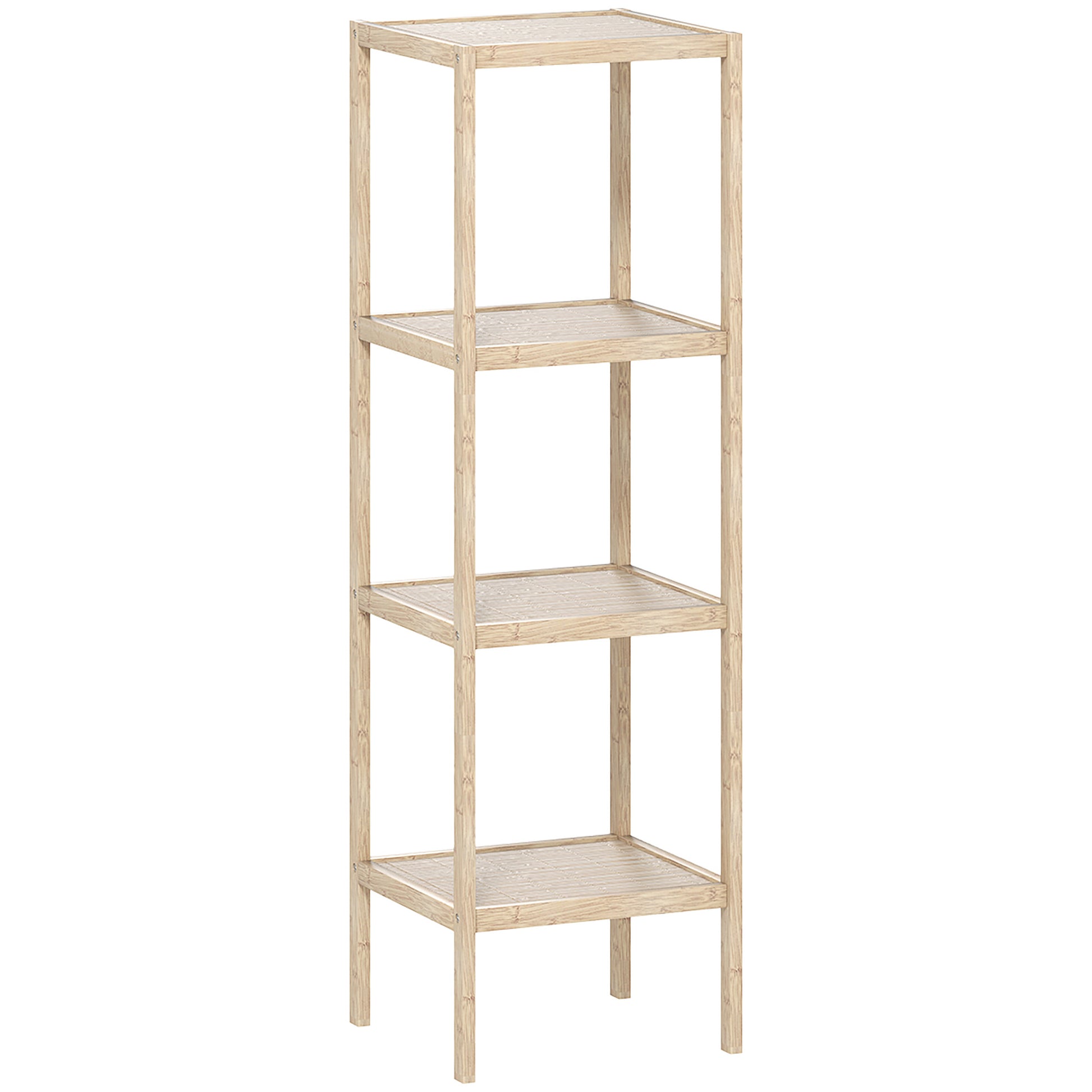 Four-Tier Shelf Bathroom Storage Unit Bamboo Natural Finish