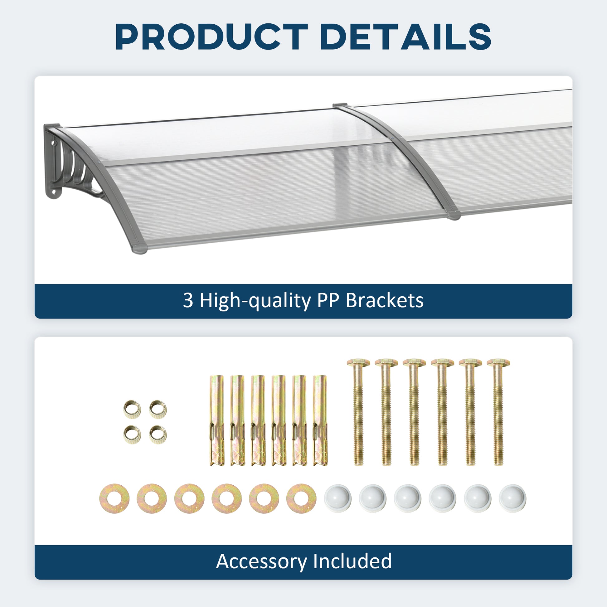 Front Door Canopy Outdoor Awning Rain Shelter 196 x 75cm Clear
