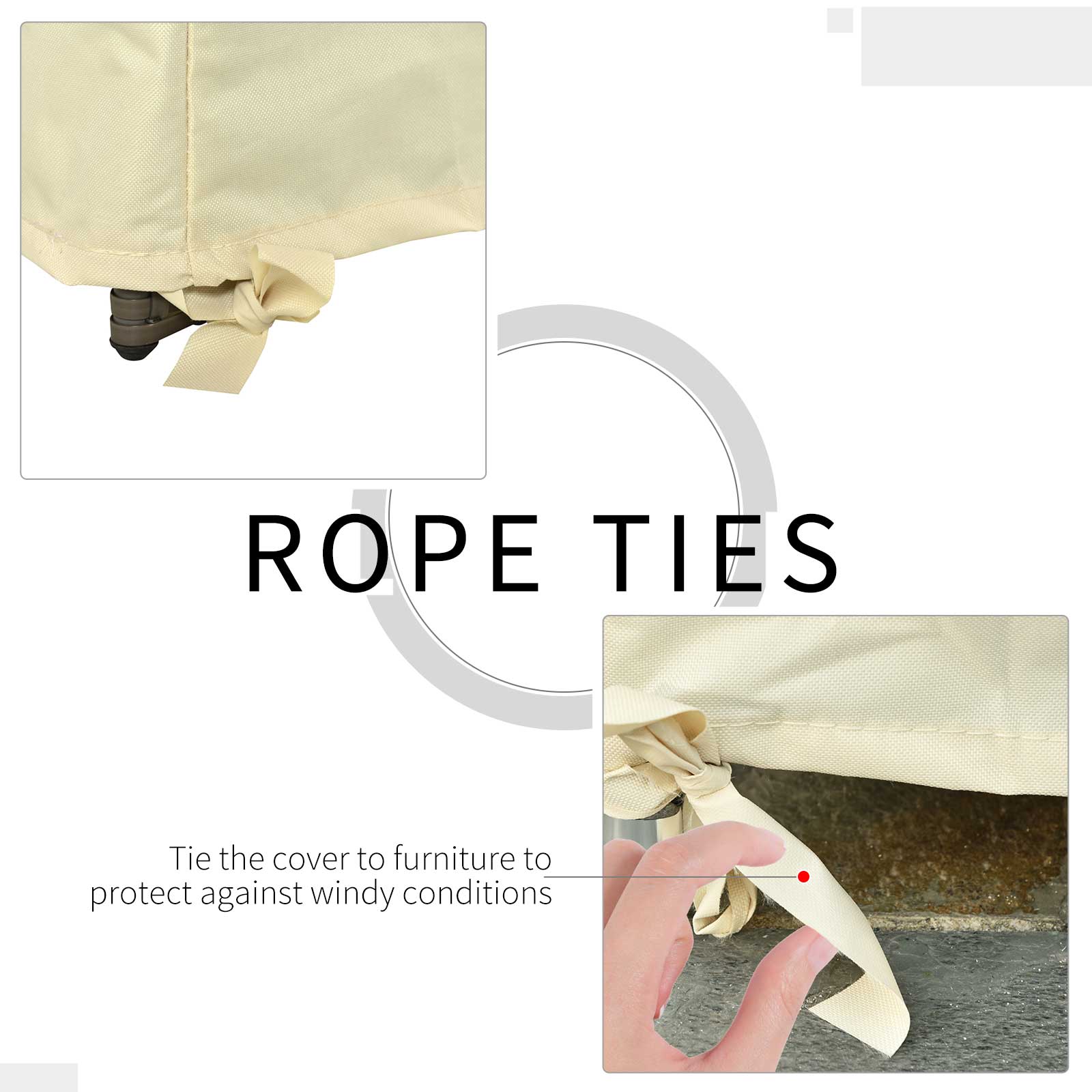 Fixing bandages in the four corners provide an additional fix, ensuring the cover stays on during the windiest of days. It is very easy to clean: simply wipe with a damp cloth and dry it up in the sun. It is easy and convenient to cover and remove.