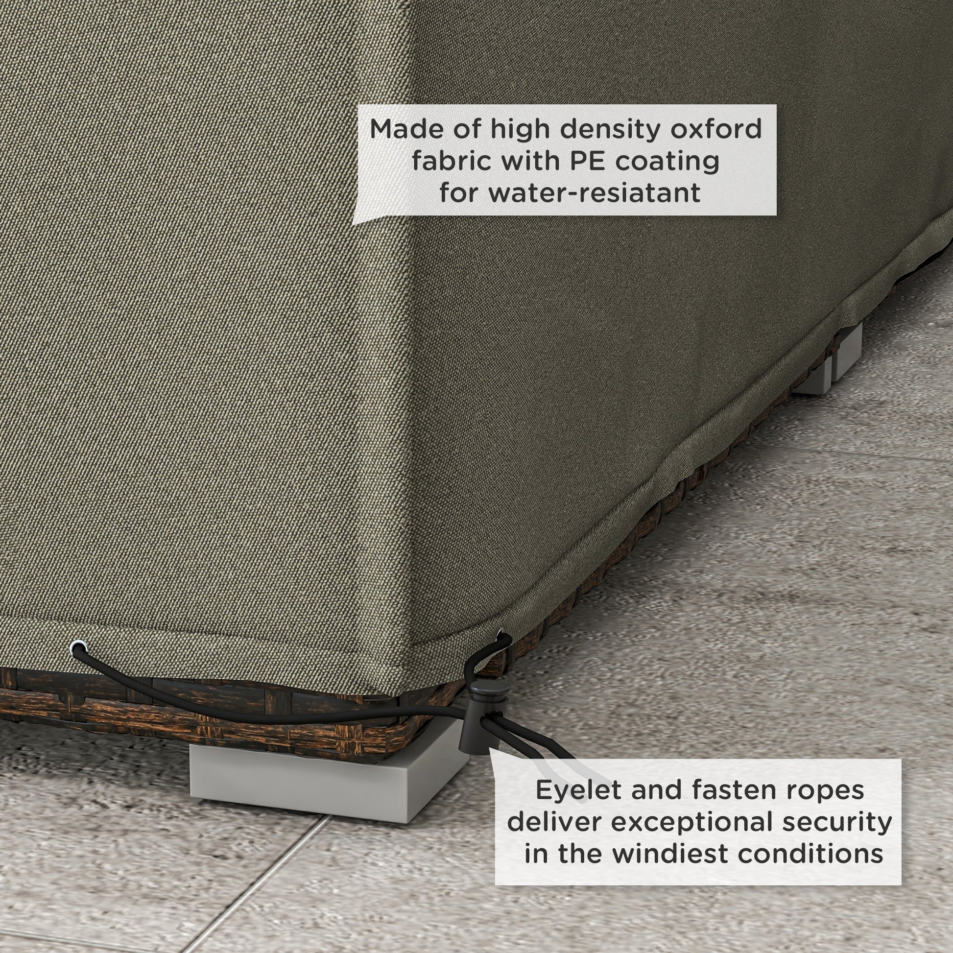 Made from top quality and durable Oxford fabric with a waterproof 130g/m² PE coating, this rattan furniture cover provides a multi-layer defense.