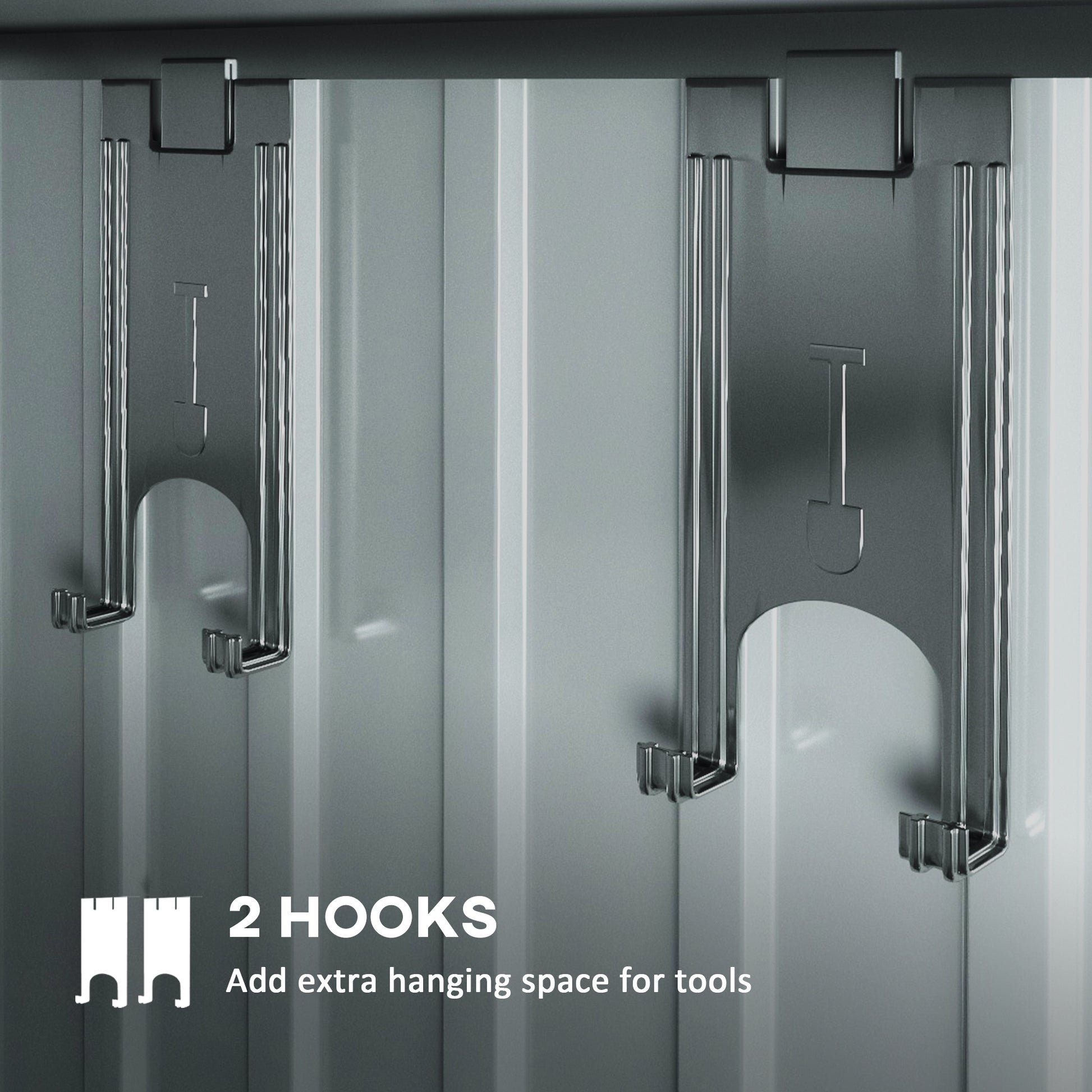6.5 x 4ft size: Metal garden shed offers room for keeping garden tools and equipment. 2 extra hooks allow hanging of water pipes, shovels and rakes.