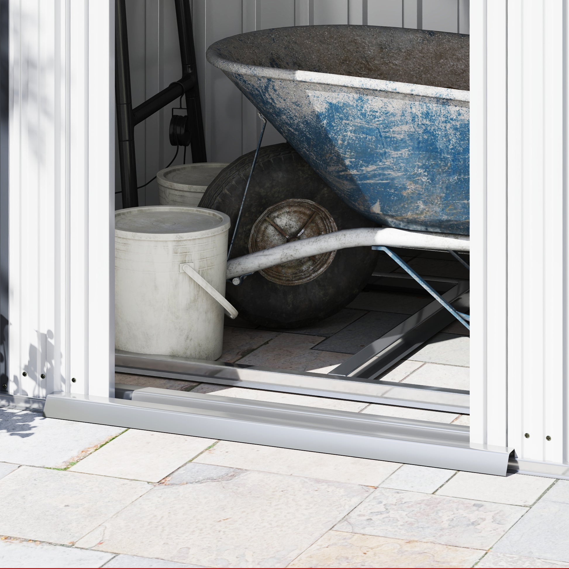 Galvanised steel structure: Metal storage shed is strong and stable, suitable for outdoor use.