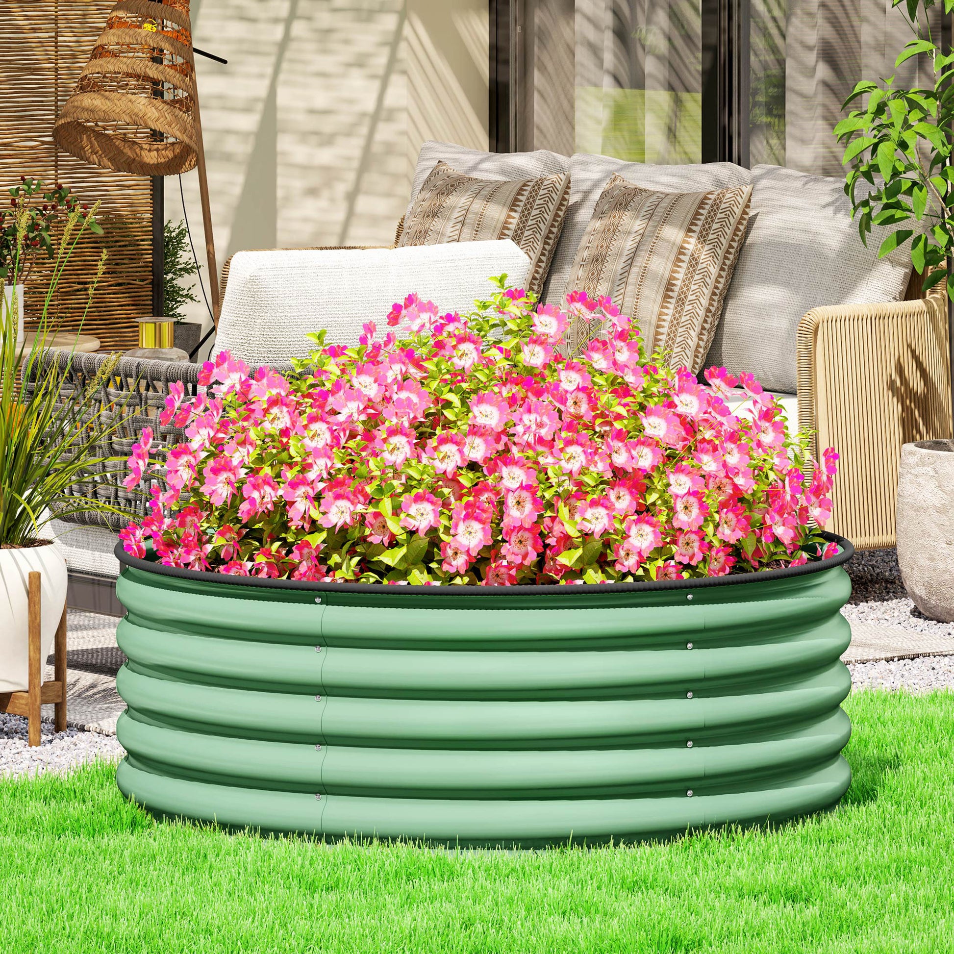 Galvanised Raised Garden Bed with Safety Edging Planter Box, Light Green