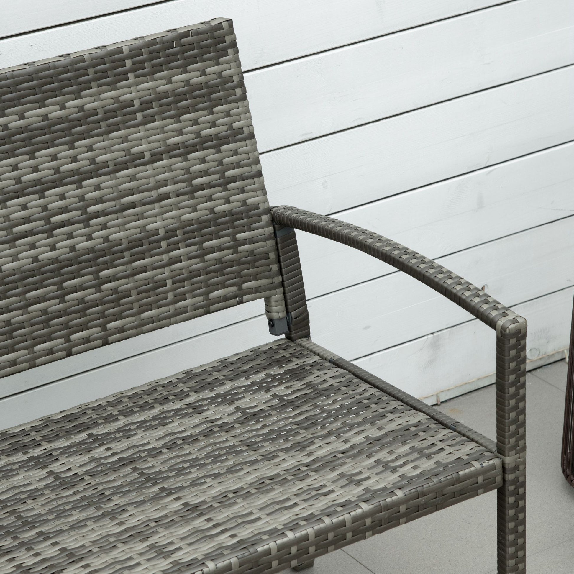Garden Bench, Rattan Look 2-Seater Steel Frame 320kg Capacity, Grey