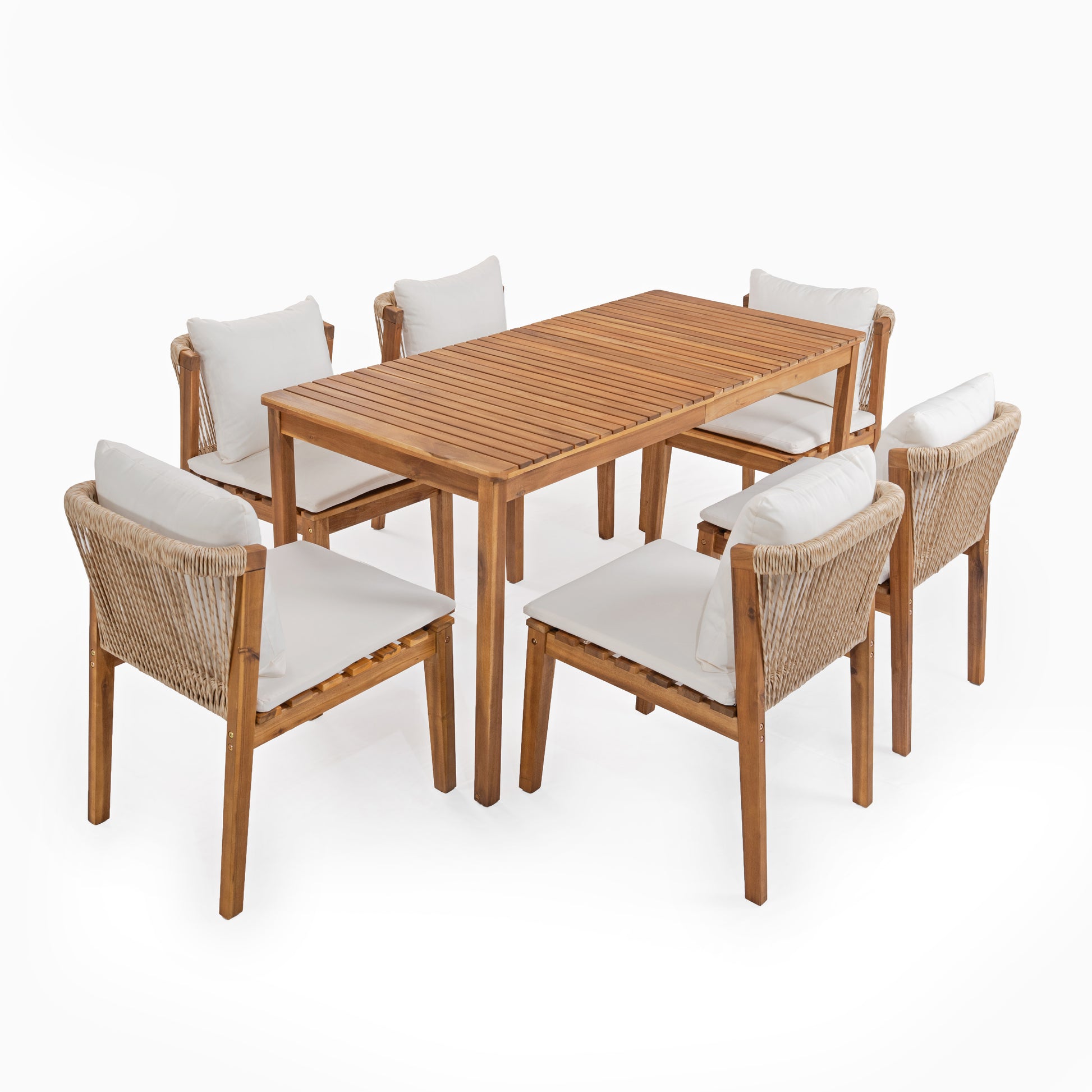 Garden Dining Set with 1 Table and 6 Chairs, Solid Wood and Beige