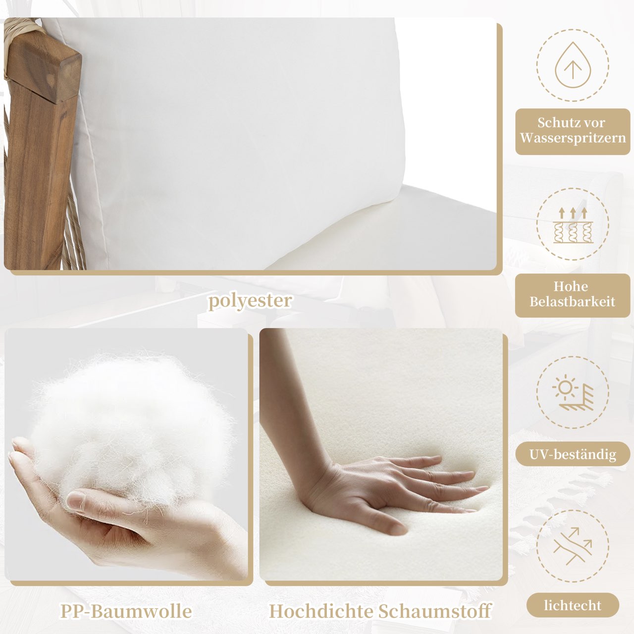 This garden dining set is crafted from acacia wood, polyester, PP cotton, and sponge. The country of origin for this product is Vietnam.