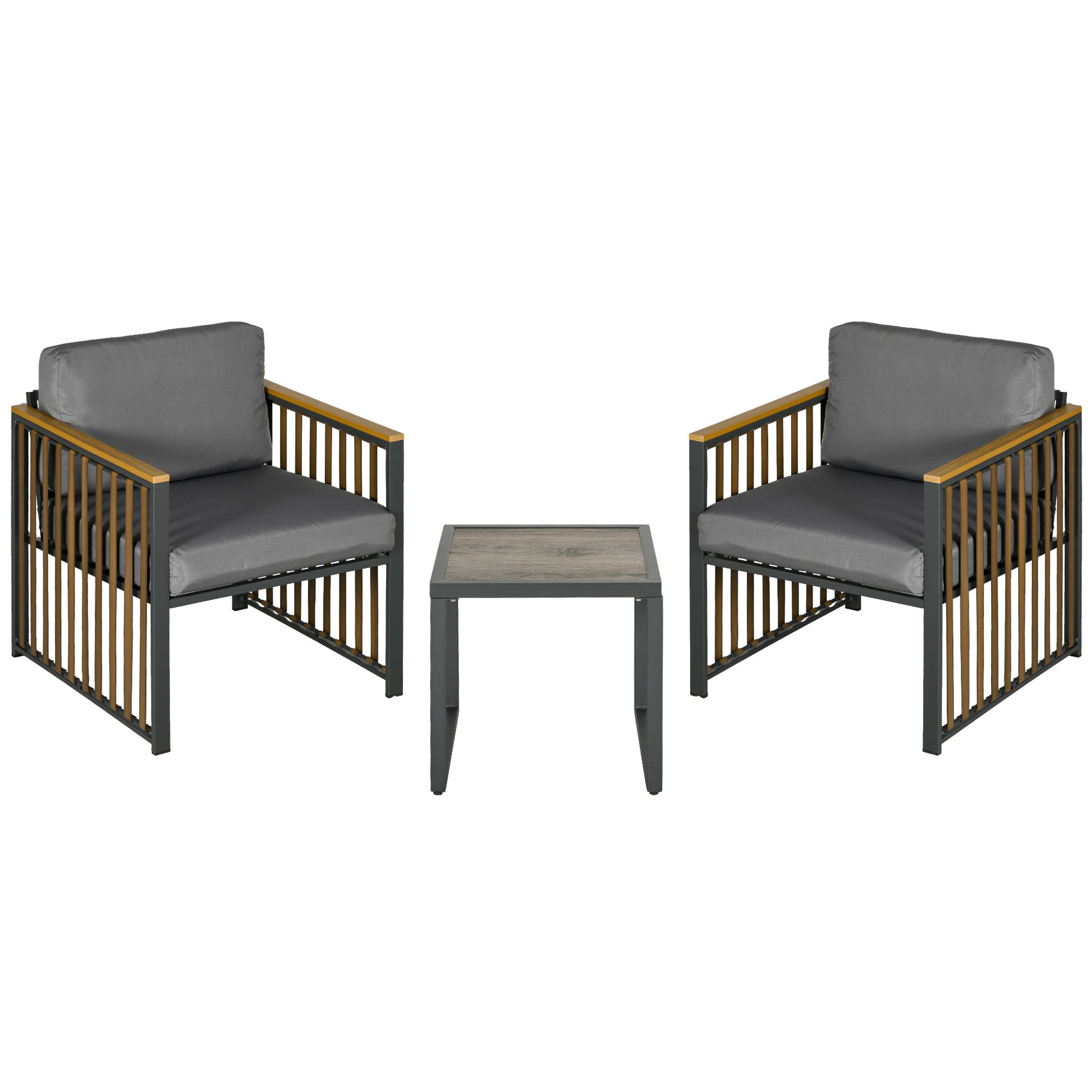 Garden Furniture Set, 3-Piece Bistro with Coffee Table & 2 Chairs, Grey