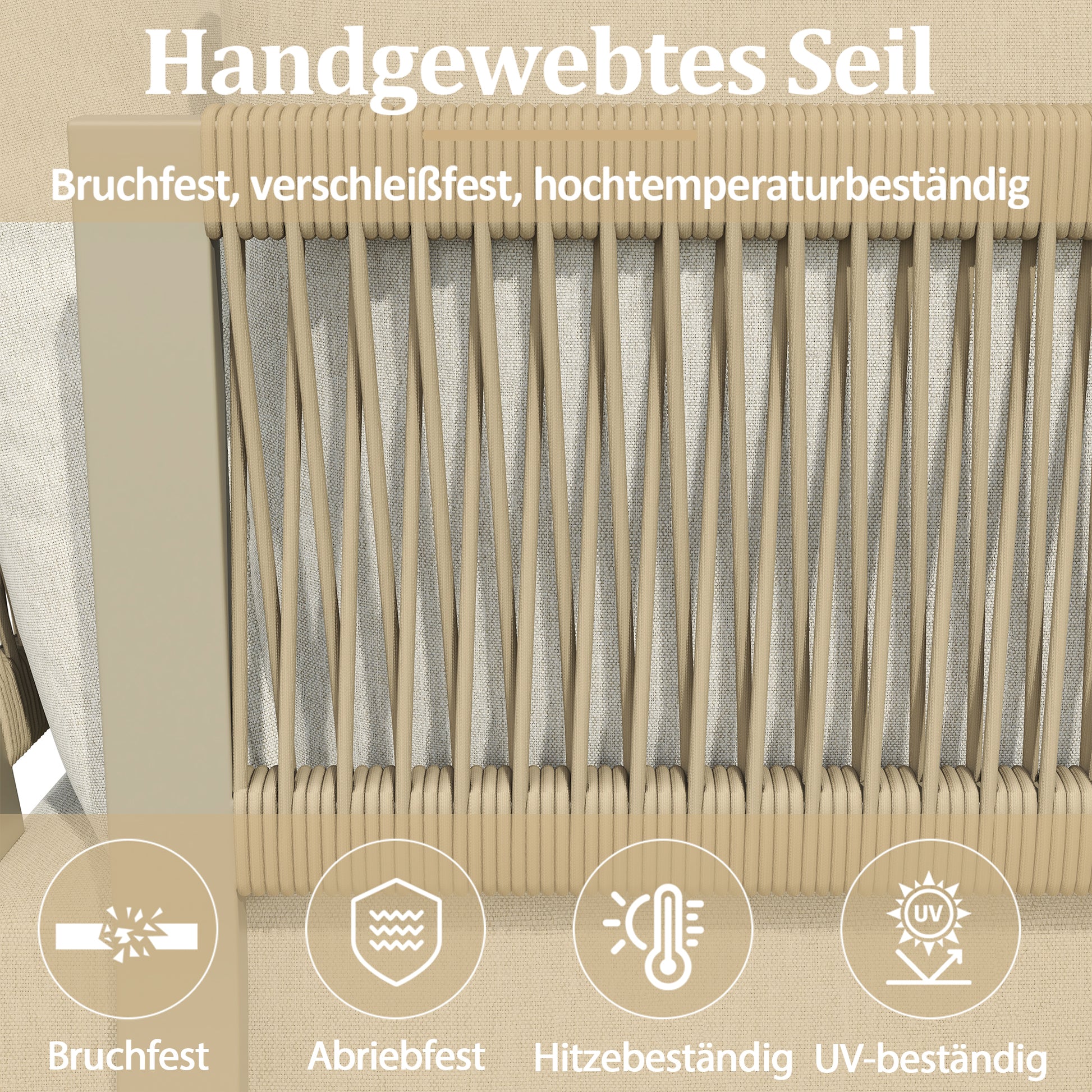 Garden Furniture Set with 2 Convertible Reclining Beds and Coffee Table, Beige